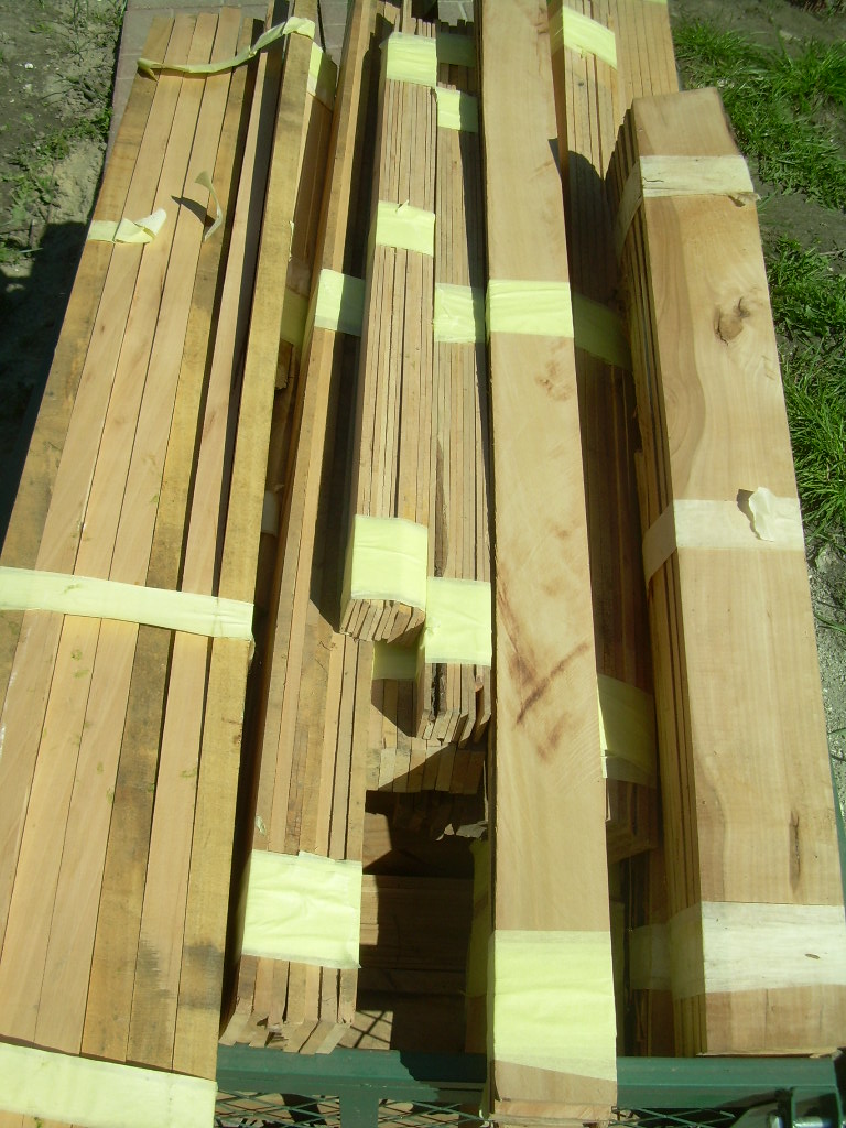 Jak możecie zobaczyć na wózku suszę/sezonuję drewno już pocięte na listwy w pakietach ciasno sklejonych taśmą malarską. W ten sposób przechowywane listwy nie paczą się.