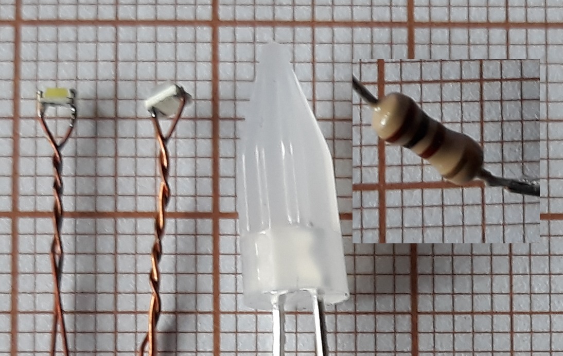 Diody smd wybieramy też takie, które mają 20mA. Opornik 100omów na wszelki wypadek.