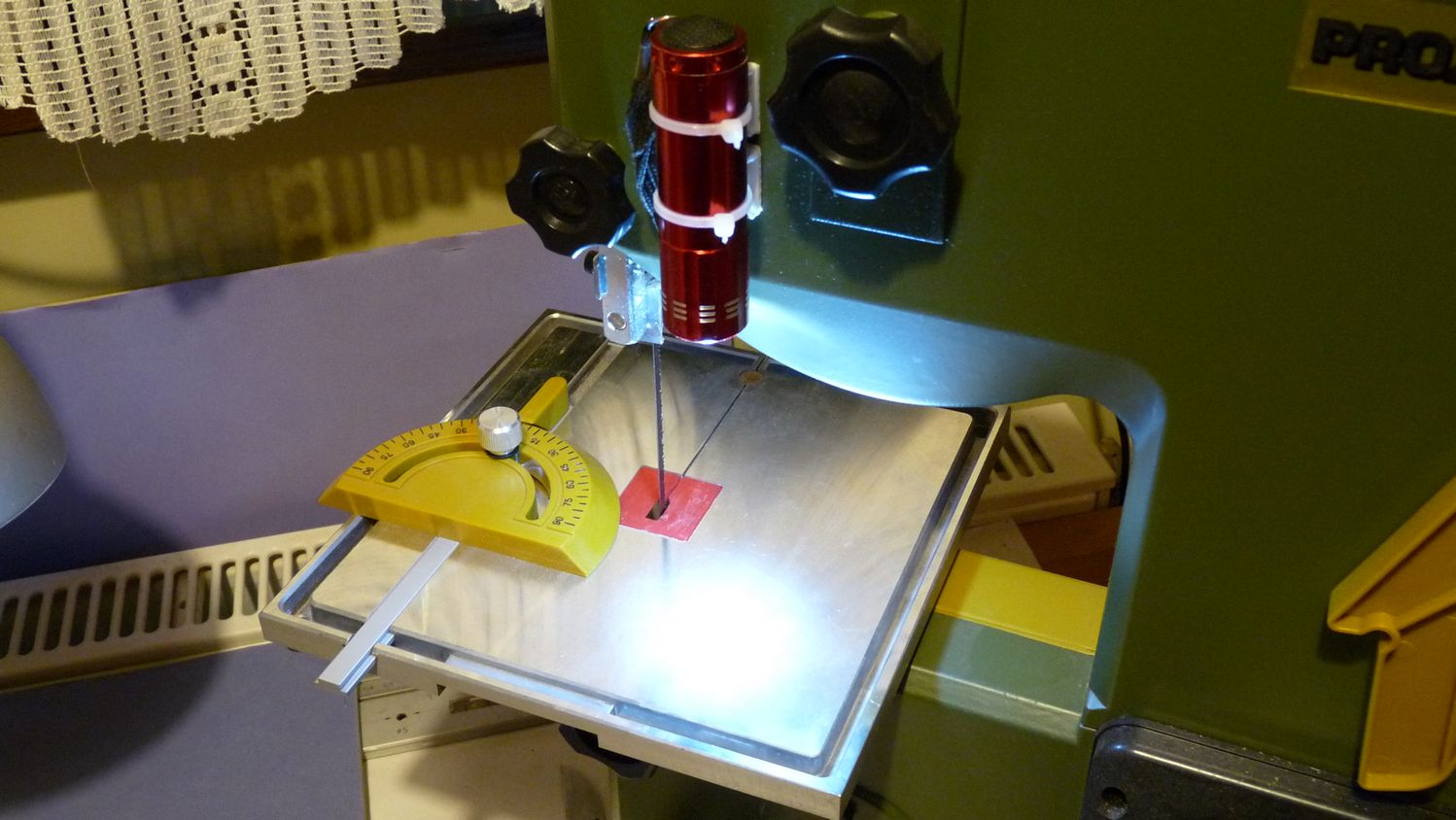 Tym razem to Wojtek mnie natchnął i w 5 minut wymyśliłem takie oświetlenie do piły taśmowej.