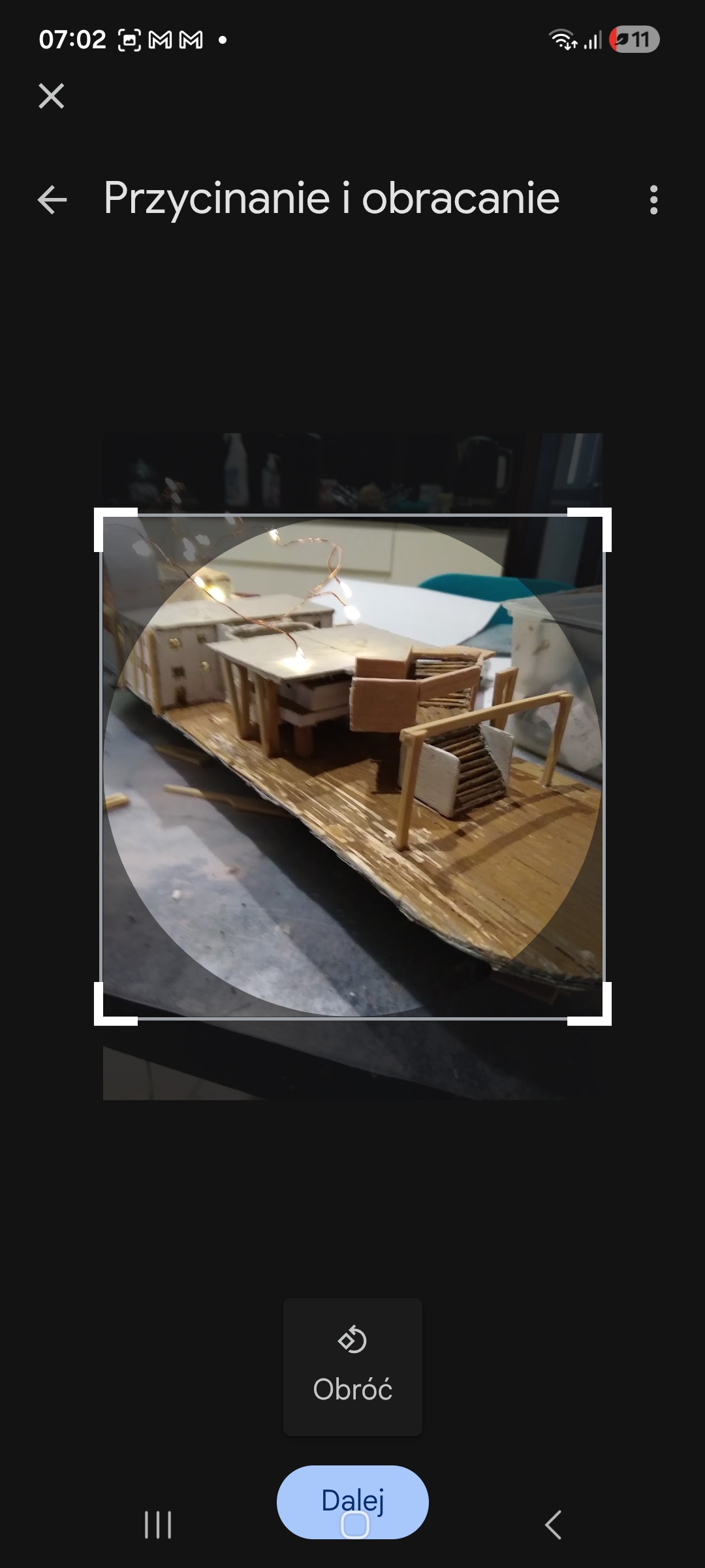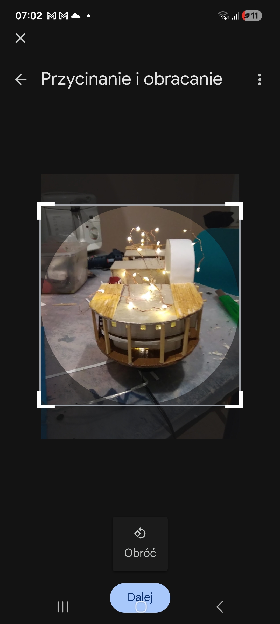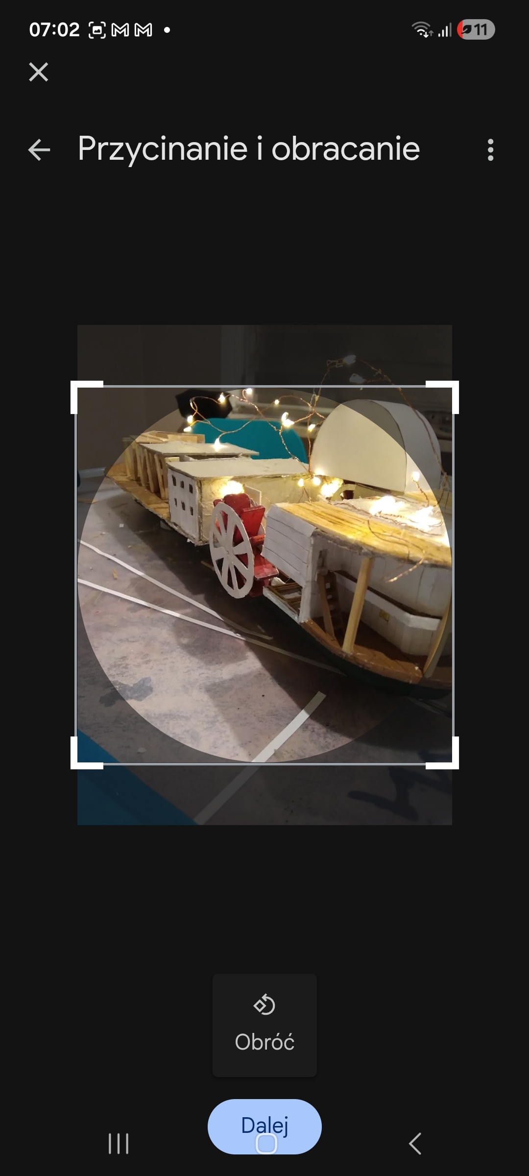 Model zbudowany z niczego (patyczki do kawy, zapałki). Posiada działający silniczek elektryczny do kół łopatkowych oraz pełne oświetlenie LED."