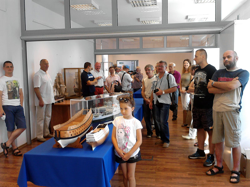 Tu dyskusja nad najbardziej szkutniczym modelem na wystawie. Nie miał wprawdzie żagli, ale będziemy nad tym pracować.