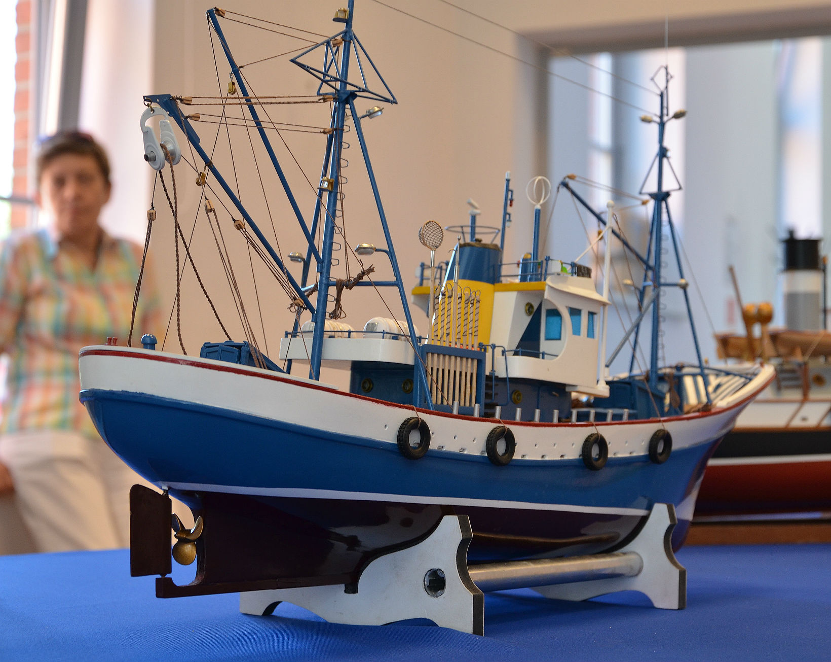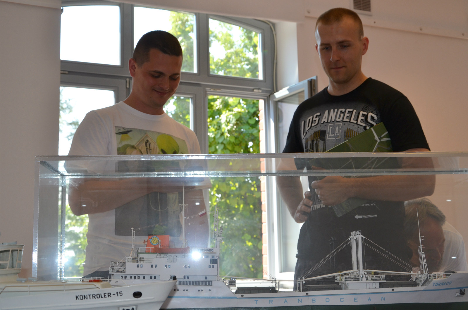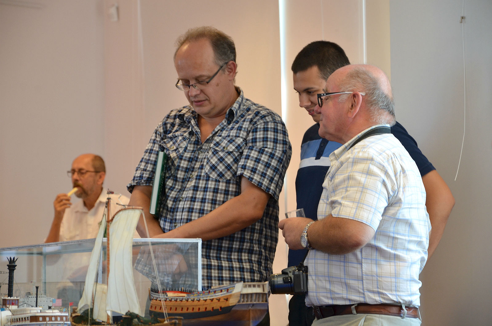 Tu dyskusja nad najbardziej szkutniczym modelem na wystawie. Nie miał wprawdzie żagli, ale będziemy nad tym pracować.