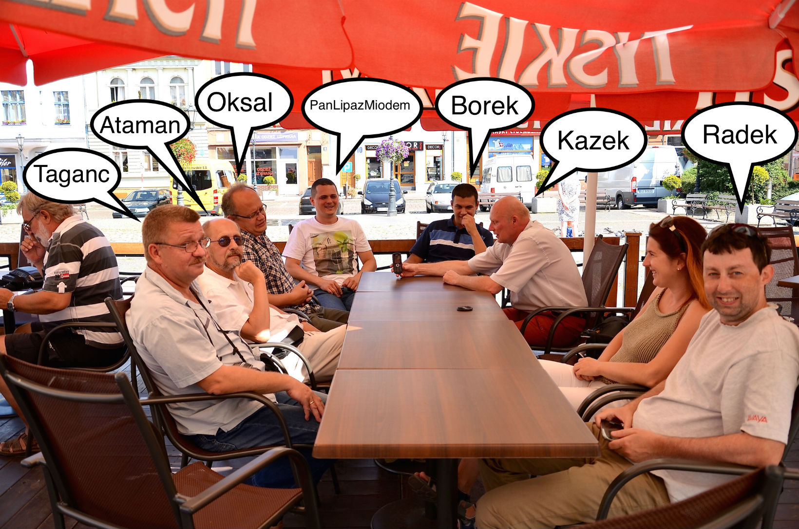 , połączona z merytorycznymi dyskusjami o modelach. Jak zwykle w sobotę udałem się rankiem na rynek, ale tym razem w restauracji Mocca zastała mnie grobowa cisza, nie było żywej duszy, nie miał kto jeść jajecznicy, nikt nie hałasował. Panie kelnerki też były zawiedzione. Sięgnąłem po telefon, celem ustalenia miejsca pobytu towarzystwa. Borek poinformował mnie, że przesiadują w restauracji niedaleko muzeum, podkreślam słowo „w restauracji”. Tczewa za dobrze nie znam, ale okolice muzeum co nieco kojarzę i istnienia restauracji w tym miejscu nie pamiętałem. Idę zatem w stronę muzeum i kieruję się do jedynego znanego mi w tym miejscu lokalu, pijalni piwa. Jest to niezwykle urokliwe miejsce, o nienachalnym wystroju wnętrza, z romantyczną, przydymioną atmosferą. Przy mocno rustykalnych stołach, na ławach tapicerowanych aksamitną w dotyku falistą tekturą, subtelnie i fantazyjnie przymocowaną sznurkiem, zasiadają lokalni degustatorzy złotego trunku. Siedzi tam również Ataman, Lipa, Borek i Oksal (kolejność wymienionych zupełnie przypadkowa). Wszyscy piją piwo z wyjątkiem Oksala, który sączy soczek (oficjalna wersja dla żony). Wybija godzina 12.00, udajemy się do muzeum, gdzie rozpoczyna się oficjalne otwarcie wystawy. Mniej oficjalne otwarcie było oczywiście dnia poprzedniego.