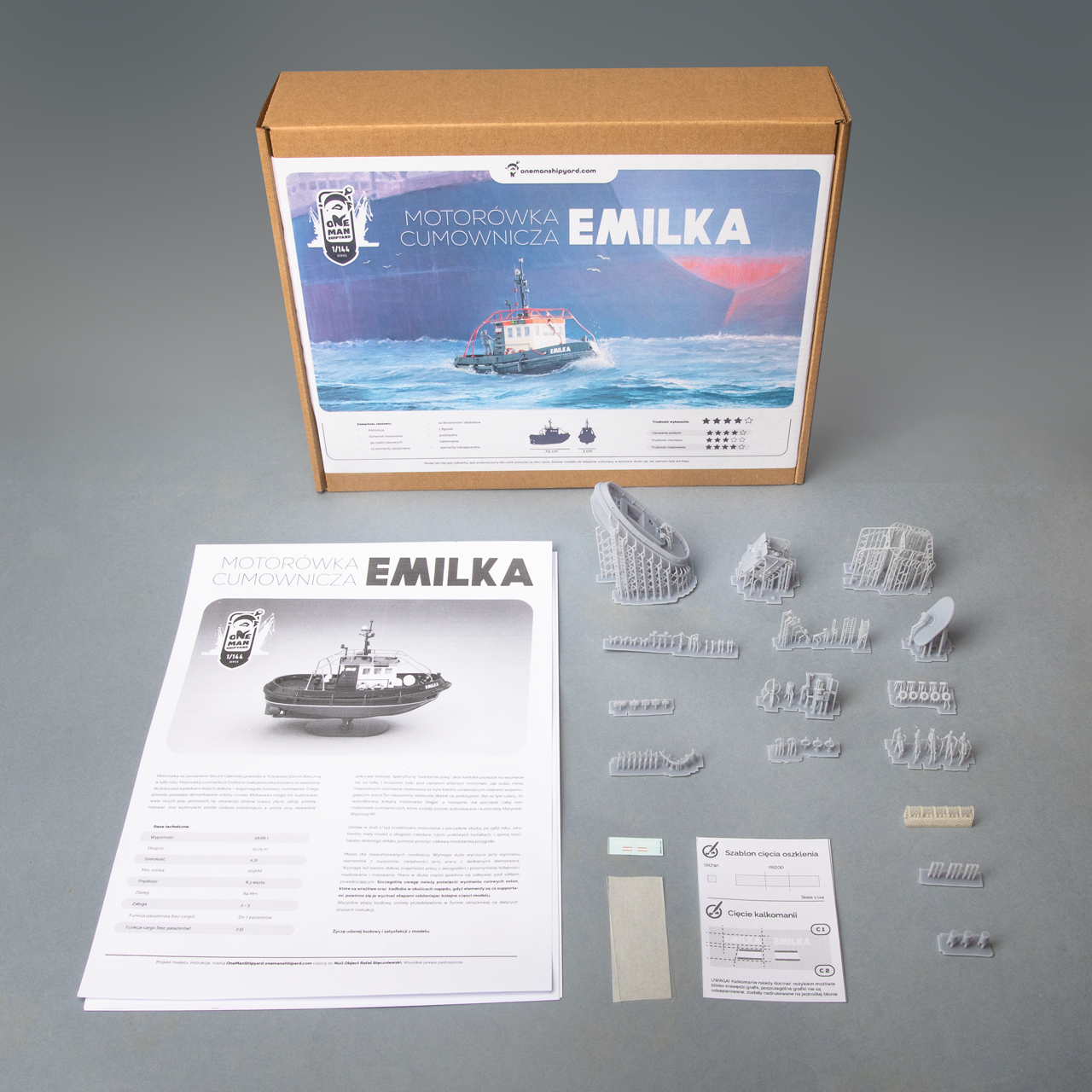 Skala to na razie 1/144. W tej chwili znajdziecie tam model EMILKI, flagi sygnałowe i oponki do holowników ale będę co jakiś czas wrzucał nowe rzeczy, akcesoria tez w innych skalach.