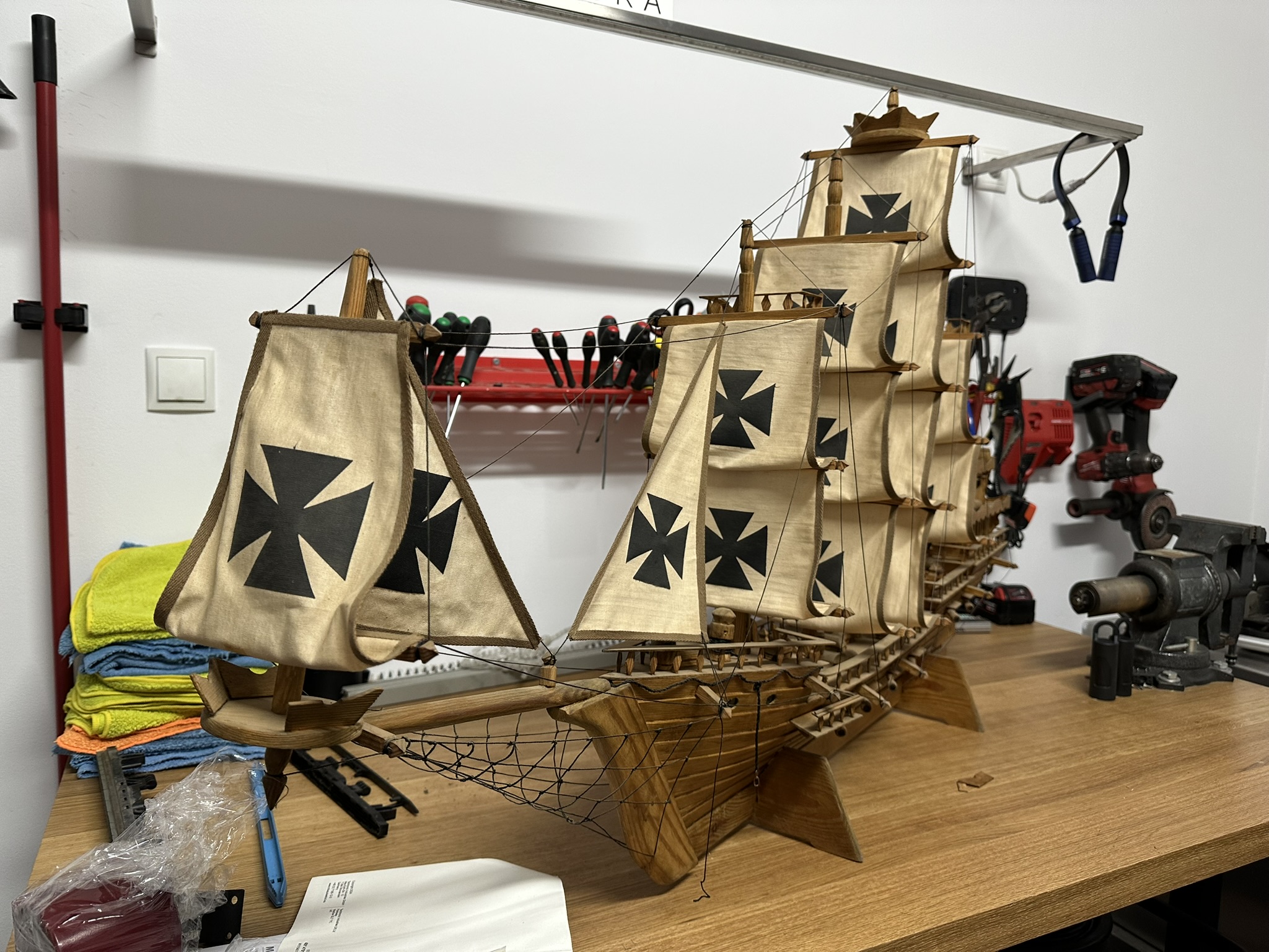 Poza tym, calosc jest zbudowana raczej prymitywnie, detale tylko zaznaczone, albo i nie, sladowe olinowanie ruchome, model typowo kominkowy...,