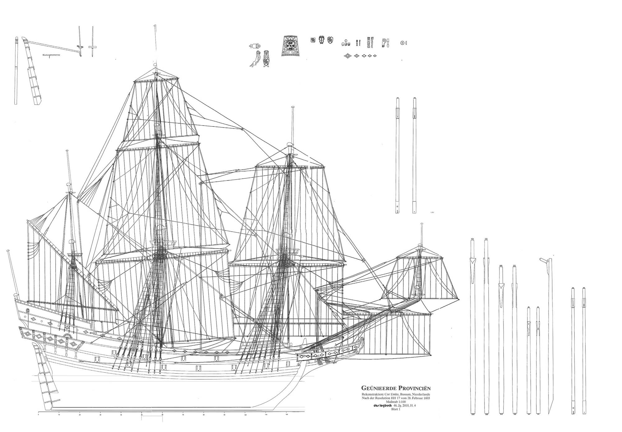Oba okręty zostały zbudowane w podobnym czasie co Wodnik czyli w jego planach powinniśmy szukać wskazówek do budowy jednostek większych. Jak wiadomo na wygląd naszych okrętów duży w pływ miała holenderska szkoła szkutnicza. Postanowiłem więc poszukać holenderskich jednostek o podobnych rozmiarach z tego właśnie okresu. Wtedy to natrafiłem na jednostkę o nazwie Wapen van Edam zbudowaną w Amsterdamie w roku 1644 o wymiarach niemal identycznych co wcześniej wspomniane okręty polskie.