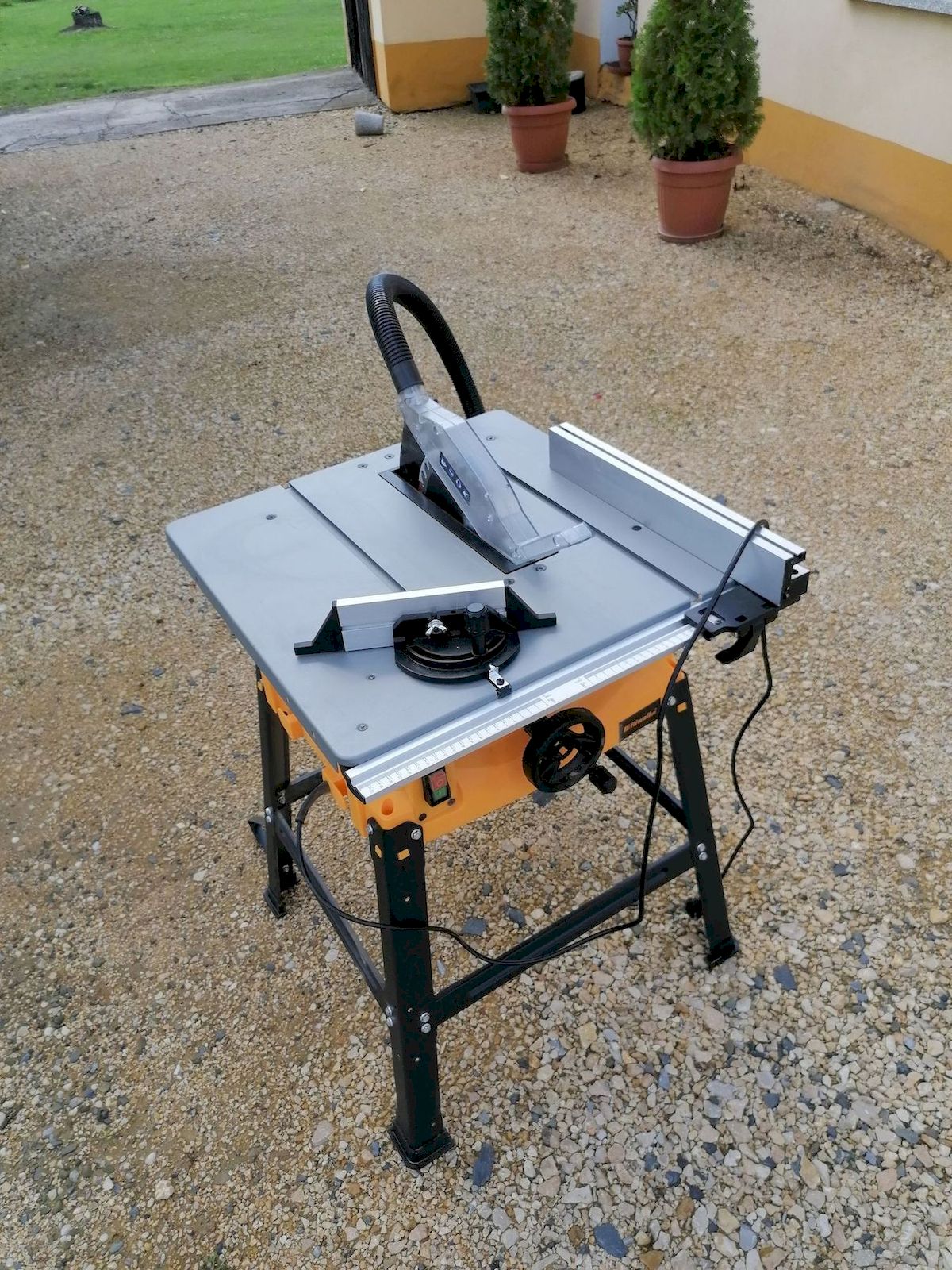 Kupiłem sobie ostatnio takie ustrojstwo. Krajzega czeskiej firmy Rowall-PRO. W rzeczywistości chińczyk. Ale jestem zadowolony. Konstrukcja lekka ale dosyć stabilna. Jak na swoją cenę, sprawuje się dobrze. Moc maksymalna 3200 W, 5700 obrotów/min. Ostatnio przecinałem deskę z gruszy o grubości 7 cm. Przy tarczy 48 zębów idzie szybko. Podczas cięcia tarczą 60 zębów idzie nieco wolniej ale bez „jęczenia” i nie męczy się. Odcinałem listewki 1 mm. Cięcia są gładkie i równe z dokładnością do ułamka milimetra. Jedyny mankament (jak na razie) to to że nie ma wolnego rozruchu i od razy wchodzi na wysokie obroty.