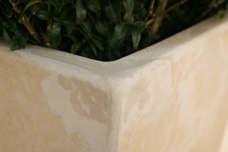 Po delikatnym wyszlifowaniu powierzchni nałożyłem farbę elewacyjną w kolorze zbliżonym jak najbardziej do koloru donicy.