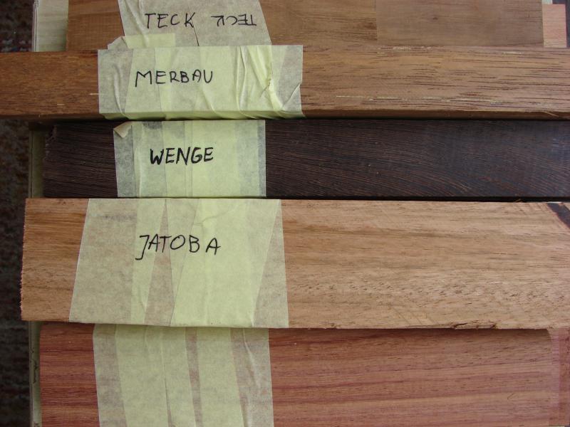 Paczka przyszła a tam niespodzianka zamiast jednego gatunku, kilka a mianowicie Jatoba, Teck,Wenge, i oczywiście sporo merbau jest też jakieś czerwonawe te nie podpisane i nie wiem co to jest.