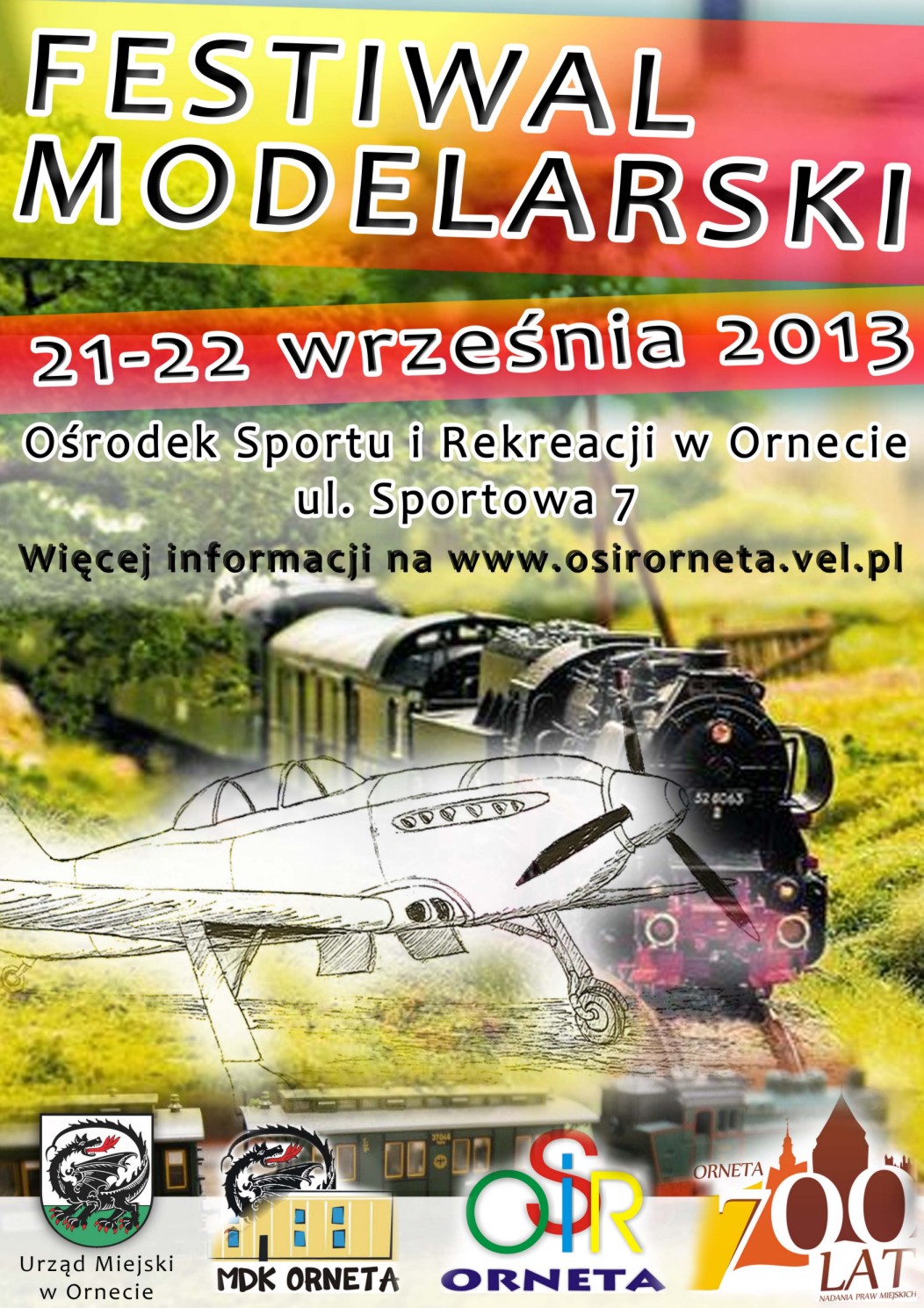 W dniach 21 - 22 września w ramach obchodów 700-lecia miasta Orneta na terenie Ośrodku Sportu i Rekreacji w Ornecie odbędzie się Festiwal Modelarski. Już teraz organizatorzy zapraszają do udziału i uczestnictwa w tej atrakcyjnej imprezie podczas której będzie można podziwiać różne modele redukcyjne statków, samolotów, czołgów itp. oraz zobaczyć ciekawe modele sterowane na wodzie i powietrzu.