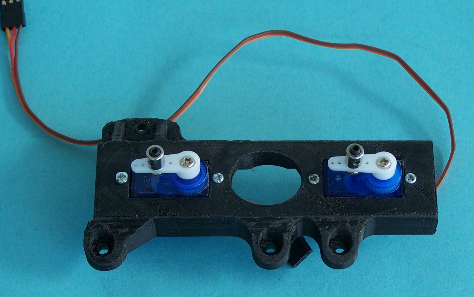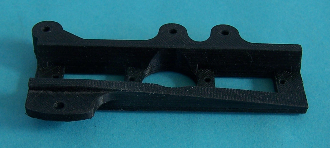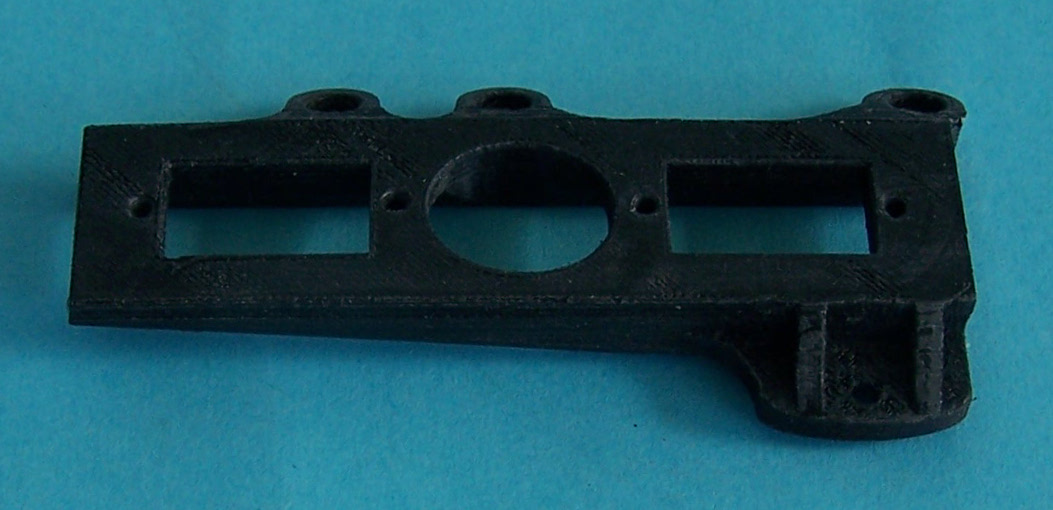 Kadłub wewnątrz ma liczne wypustki do mocowania osprzętu , postanowiłem wykorzystać je i dorobić jarzmo serw do sterów . Zaprojektowałem i wydrukowałem coś takiego ;