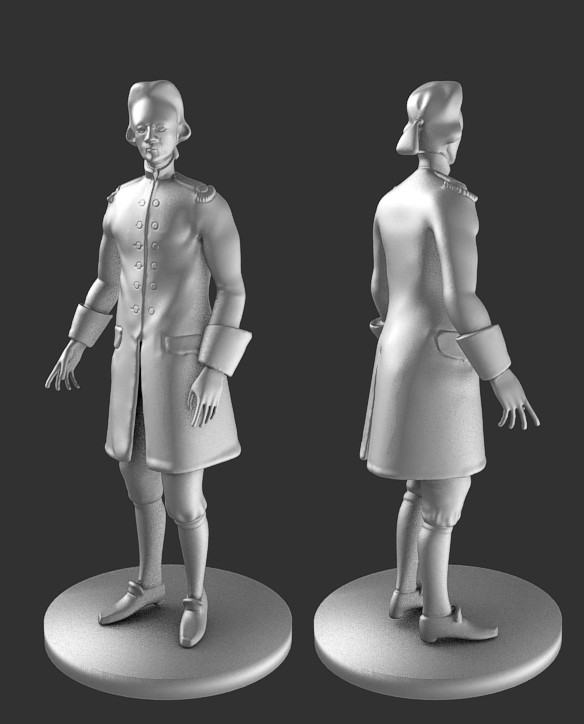 Zaczeło się od rozmowy ze Zbyszkiem o figurkach a skończy się chyba na produkcji. Pierwszy, testowy model wygląda tak, właśnie podszedł do druku 3d. Cena 1 figurki w skali 1/48 (35 mm wysokości) w twardej żywicy to 2.89 $ czyli da się od biedy przeżyć, muszę dogadać transport i wysyłkę z drukarnią. JEŚLI technologicznie wszystko będzie szło w miarę sprawnie to spróbuję podejść do tematu trochę poważniej od strony kostiumologicznej- ten tutaj jest w bardzo "umowny", zdjęty z portretu jednego z francuskich oficerów.