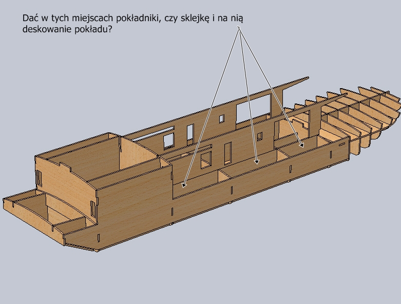 Z założenia nie będzie to model pływający. Brak mi doświadczenia, niezbędnego do obliczenia wyporności, zastosowania balastu, napędów, sterowania itd.