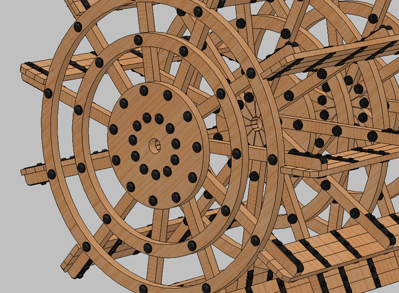 Wojtku koło napędowe bardzo ładnie rozrysowałeś ale mam wątpliwości czy ono całe było zbudowane z drewna , myślę ze nie , samo drewno chyba nie wytrzymało na tych zdjęciach choć to pewnie rekonstrukcje widać ze tylko same „łopatki” były zrobione z drewna