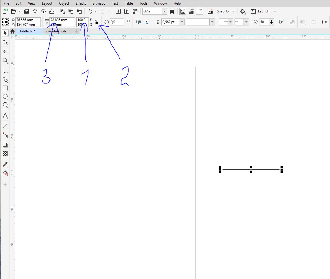 Rysujemy krzywą taką jaką mamy na rysunku na jakimś detalu , ważne aby ją narysować od razu w odpowiedniej długości aby miała 100% (1) , jeśli nam się nie udało to trzeba ją zrobić na odpowiednia długość wtedy zmieni nam się stopień procentowy , najprościej zablokować ją PKM - zablokuj obiekt - i na niej narysować kolejna krzywa , następnie przeciągamy ją w inne miejsce , poprzednią odblokowujemy i usuwamy , następnie tą naszą poprawną krzywą wydłużamy do długości która ma być , ważne aby kłódka (2) była otwarta , możemy też wpisać długość w oknie (3) jeśli znamy jej długość , po tej operacji patrzymy jaka jest wartość procentowa w oknie (1) , kolejny krok to zamykamy kłódkę , (2) , następnie zaznaczamy wszystko co ma być przeskalowane i w oknie (1) wpisujemy parametr który nam się pojawił po wydłużeniu krzywej , klikamy enter i gotowe