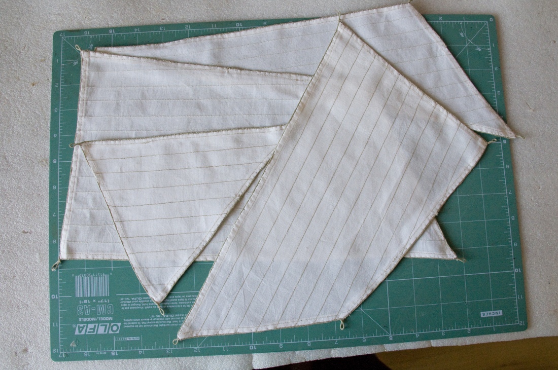 Nadszedł czas na szycie żagli. Zmarnowałem trochę materiału i czasu zanim żagle w miarę przyzwoicie wyszły.