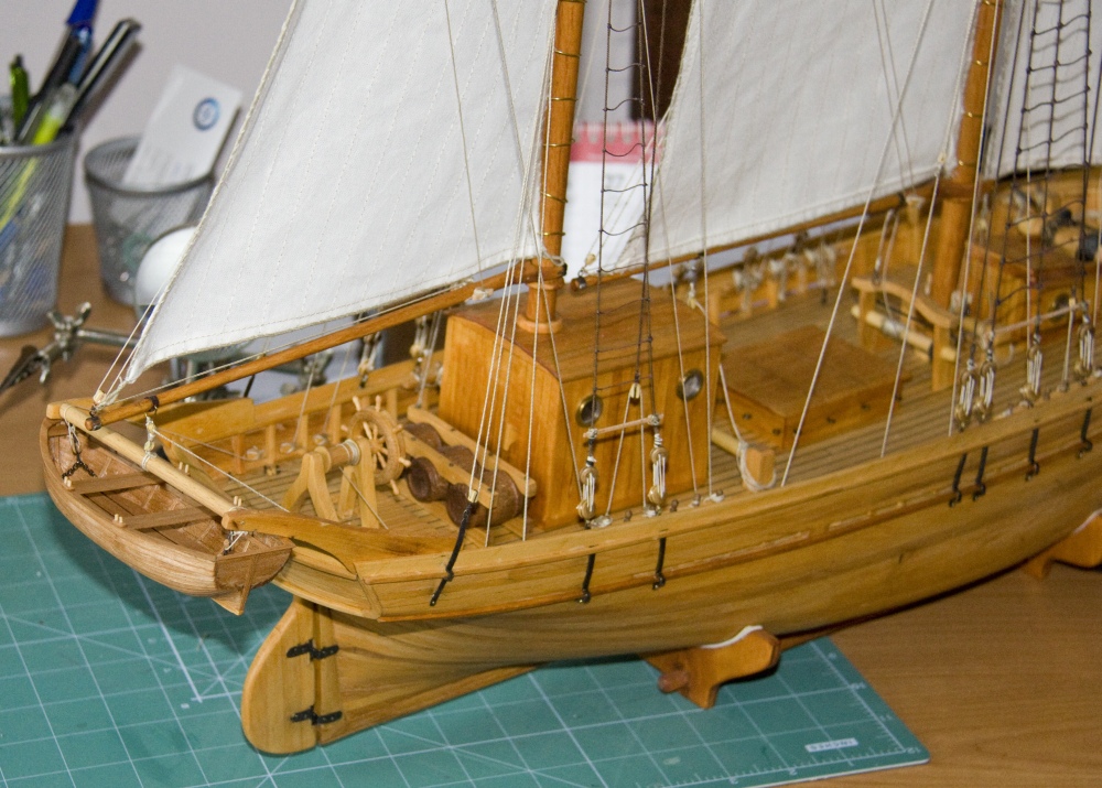Szalupa doczekała się wioseł, na galeasie zawieszono flagę i i na tym budowa i relacja została zakończona.