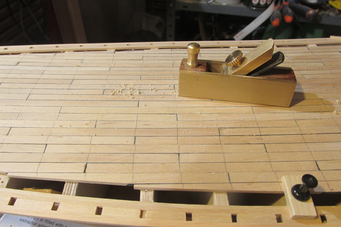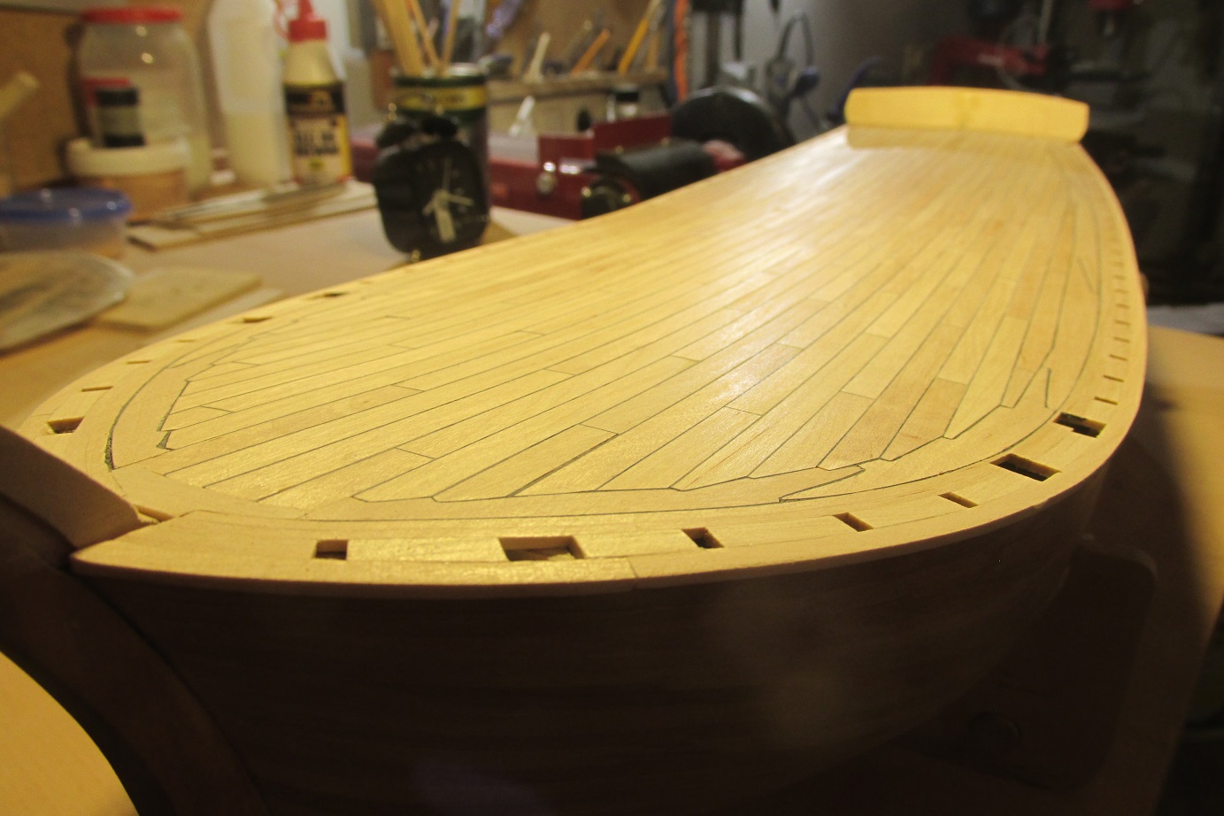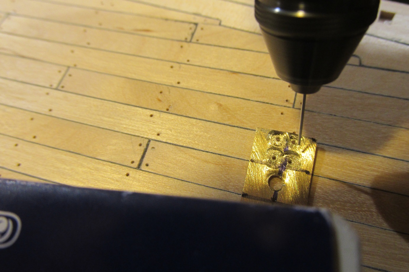 A wracając do K&M, to zakończyłem poszywanie pokładu, trochę mi schodzi a końca nie widać, dziś zacząłem wiercić pod kołkowanie i trochę jeszcze powiercę