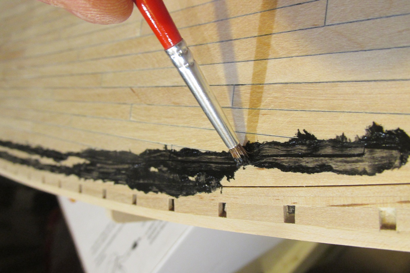 Tak jest w modelach (powinno być), ale zauważyłem w praktyce, czyli na pełnowymiarowych okrętach, że często istnieje jakiś wzór, który próbowano powtarzać, ale nie zawsze to się dawało zrobić. Dawano takie deski o długościach, jakimi akurat dysponowano i starano się raczej nie ciąć zbyt często desek do wzoru, aby zminimalizować straty na drewnie i nie zmniejszać sztywności kadłuba. Czyli czasami w/w wzór się nie powtarza w niektórych miejscach. Tak jest na oryginalnym "Victorym" w Portsmouth i na "Warriorze" tamże, tak na "Constitution" w Bostonie, jak i na "Constellation" w Baltimore, czy na fregacie "Surprise" i na barku "Star of India" - oba w San Diego. A jak jest np. na "Darze Pomorza" w Polsce? Niech ktoś lokalny sprawdzi.