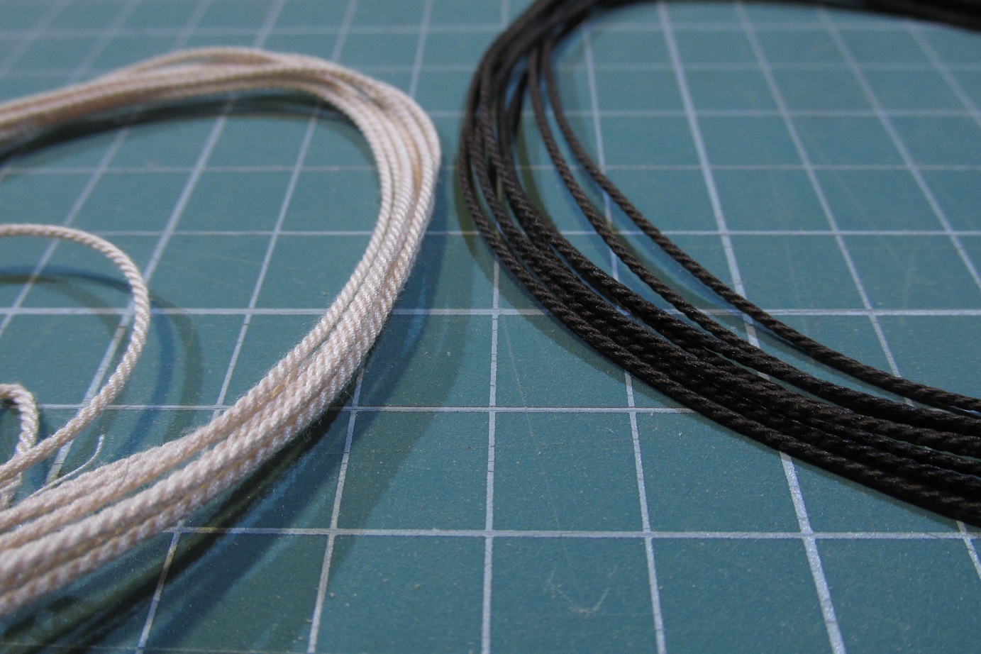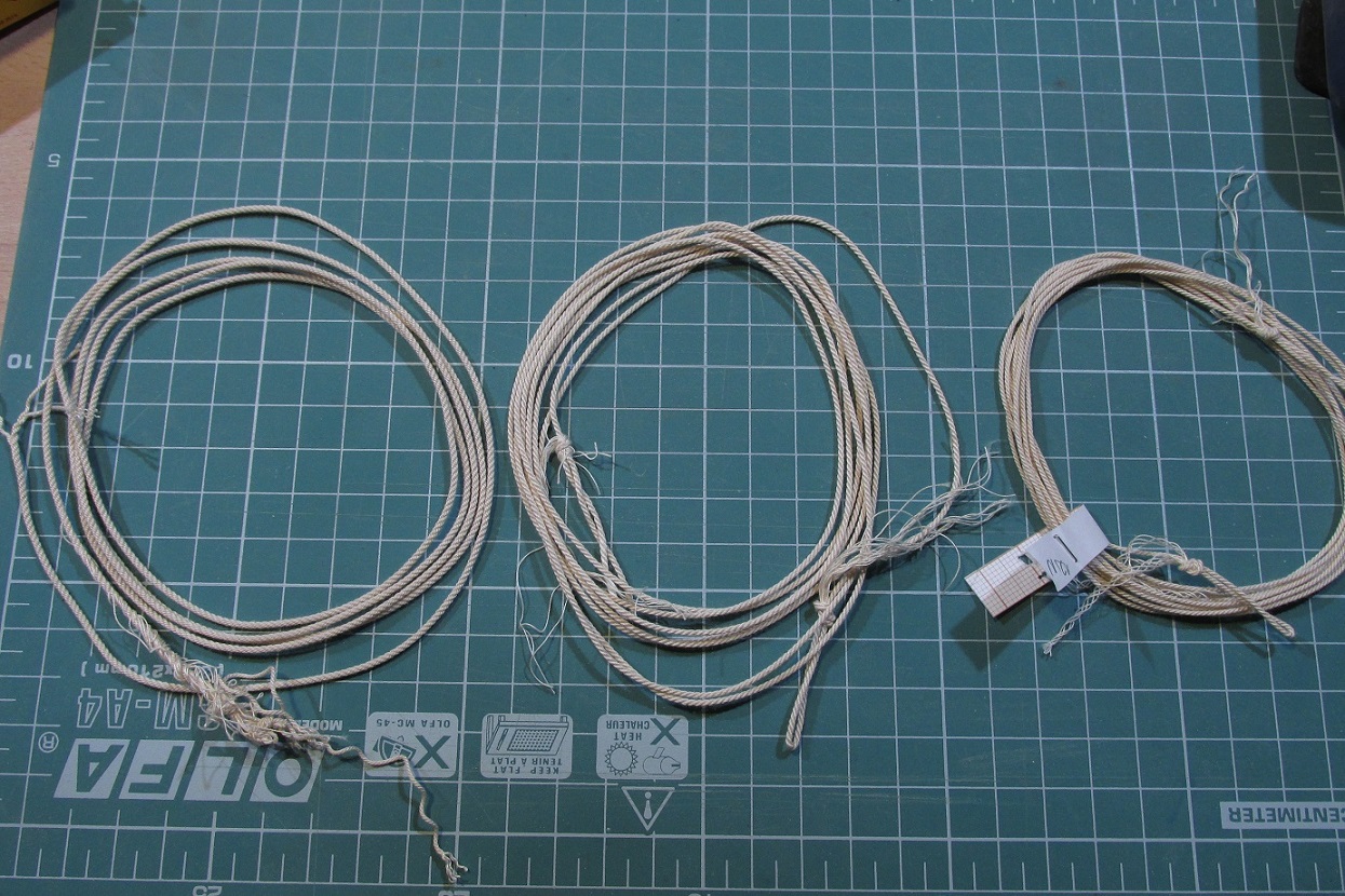 Ta z prawej jest skręcona z 27 nitek skręconych wcześniej w linki z 9 nitek. Będzie z tego sztag.