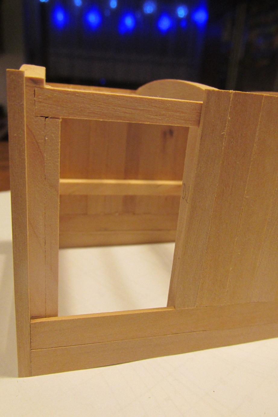 Tutaj jeszcze będę musiał wyciąć część dolnej poziomej deski, aby odsłonić otwór drzwi.