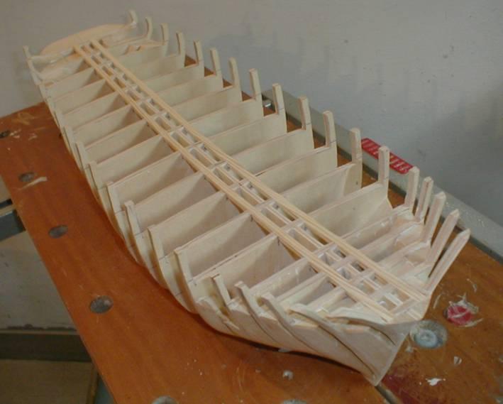 wypełnianie klockami topolowymi przestrzeni pomiędzy wręgami dziobowymi i rufowymi