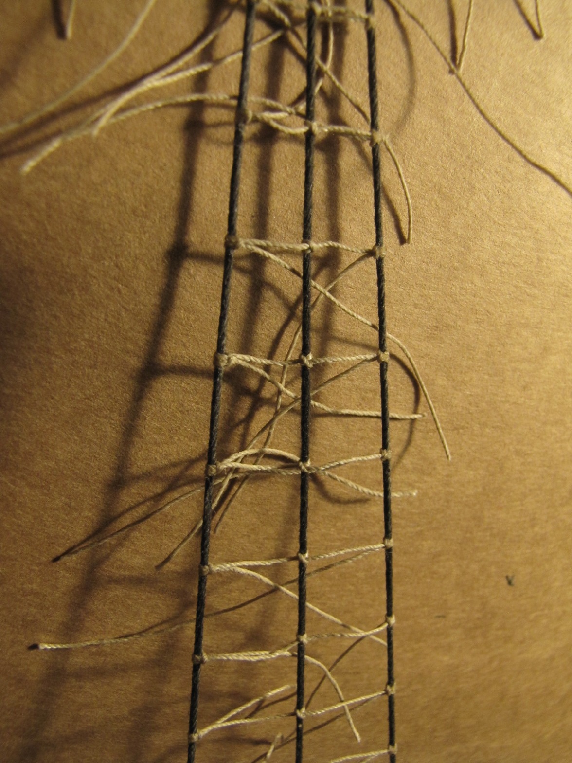 Powoli zbliżam się do zakończenia wiązania ratlines na wantach grotmasztu. W sumie wyszło 25 szczebli na każdej burcie. Daje to odległość pomiędzy szczeblami ~13 mm co w rzeczywistości odpowiada ok. 39 cm.
