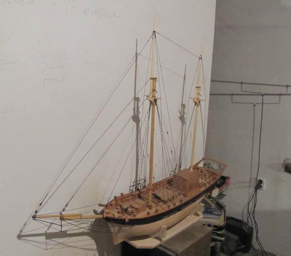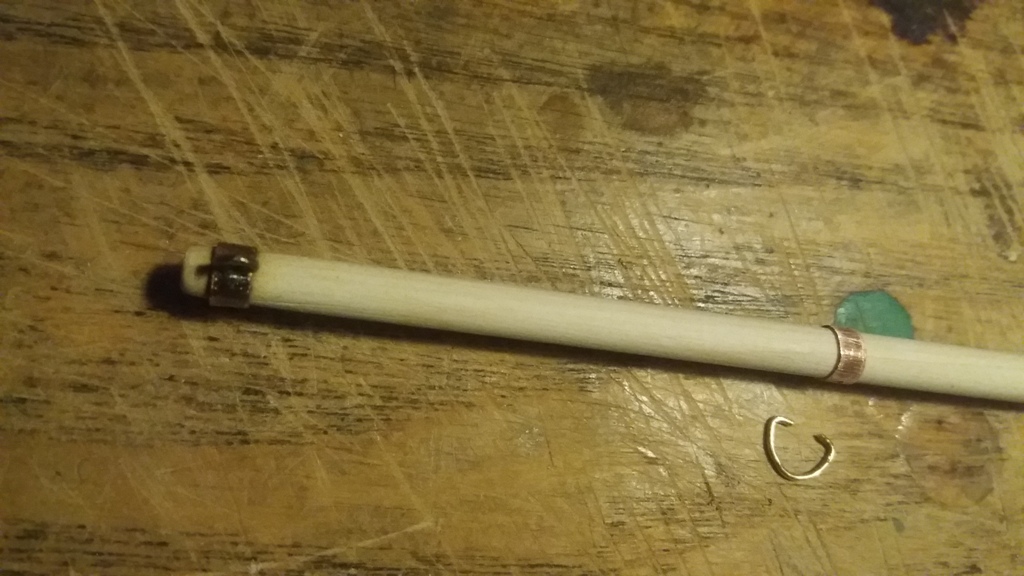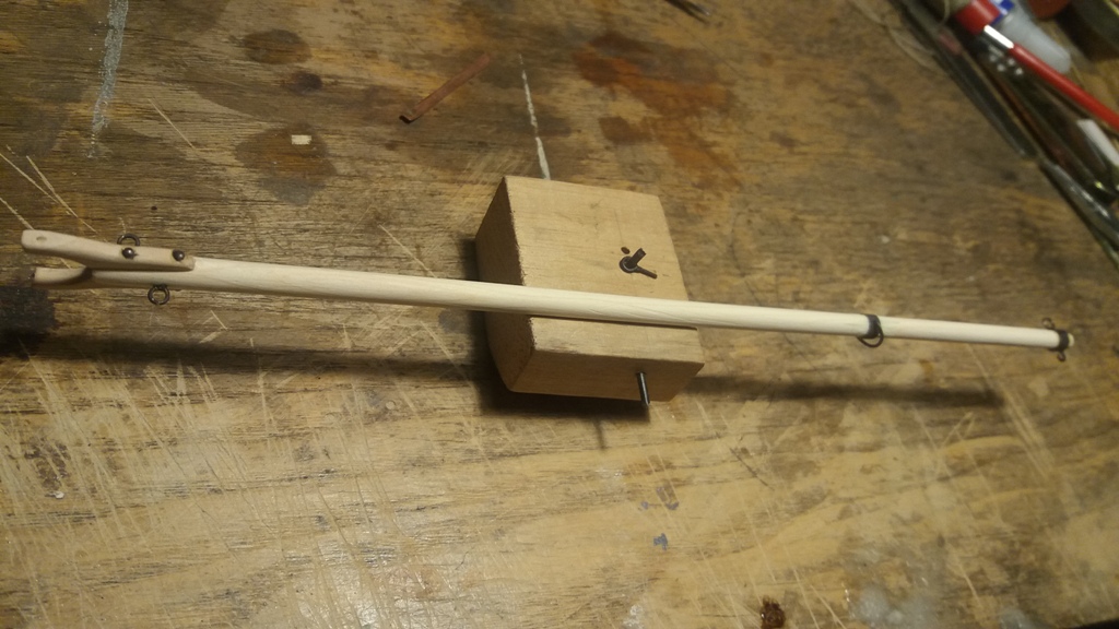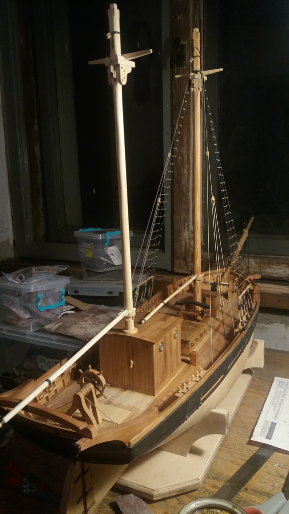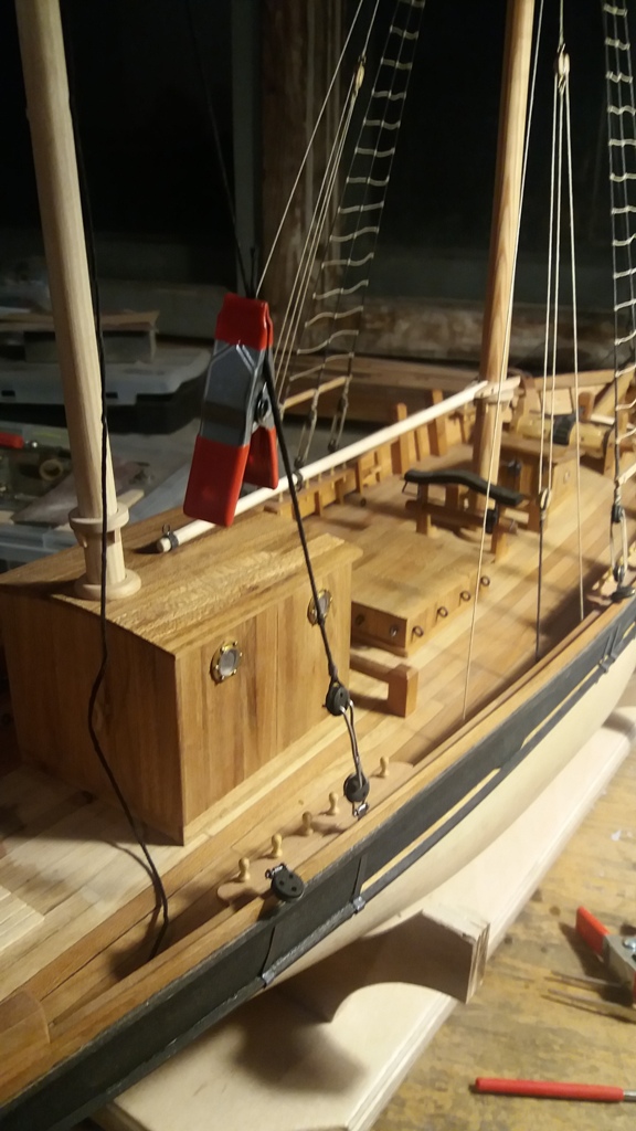 Wiązanie wyblinek ukończone. Obecnie przeniosłem się na grotmaszt i zamocowałem grot stengę.