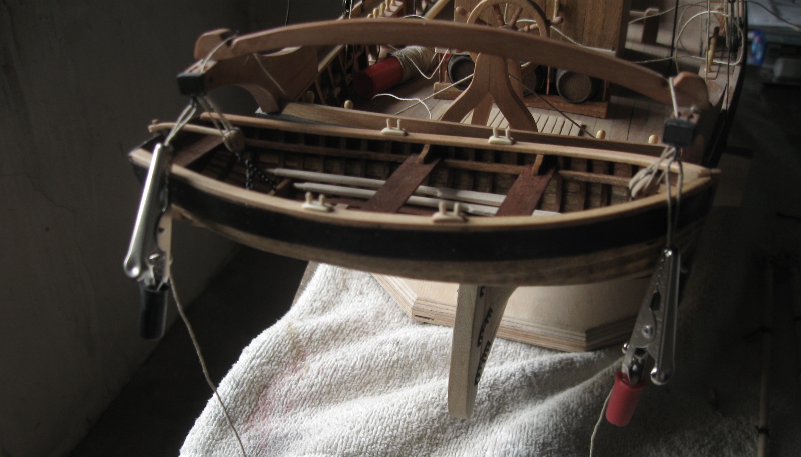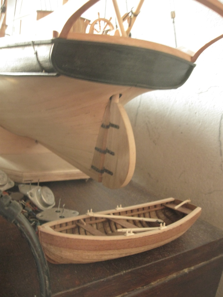 prace przy K&M zbliża się powoli do końca, na obecnym etapie zamontowałem na rufie szalupę: