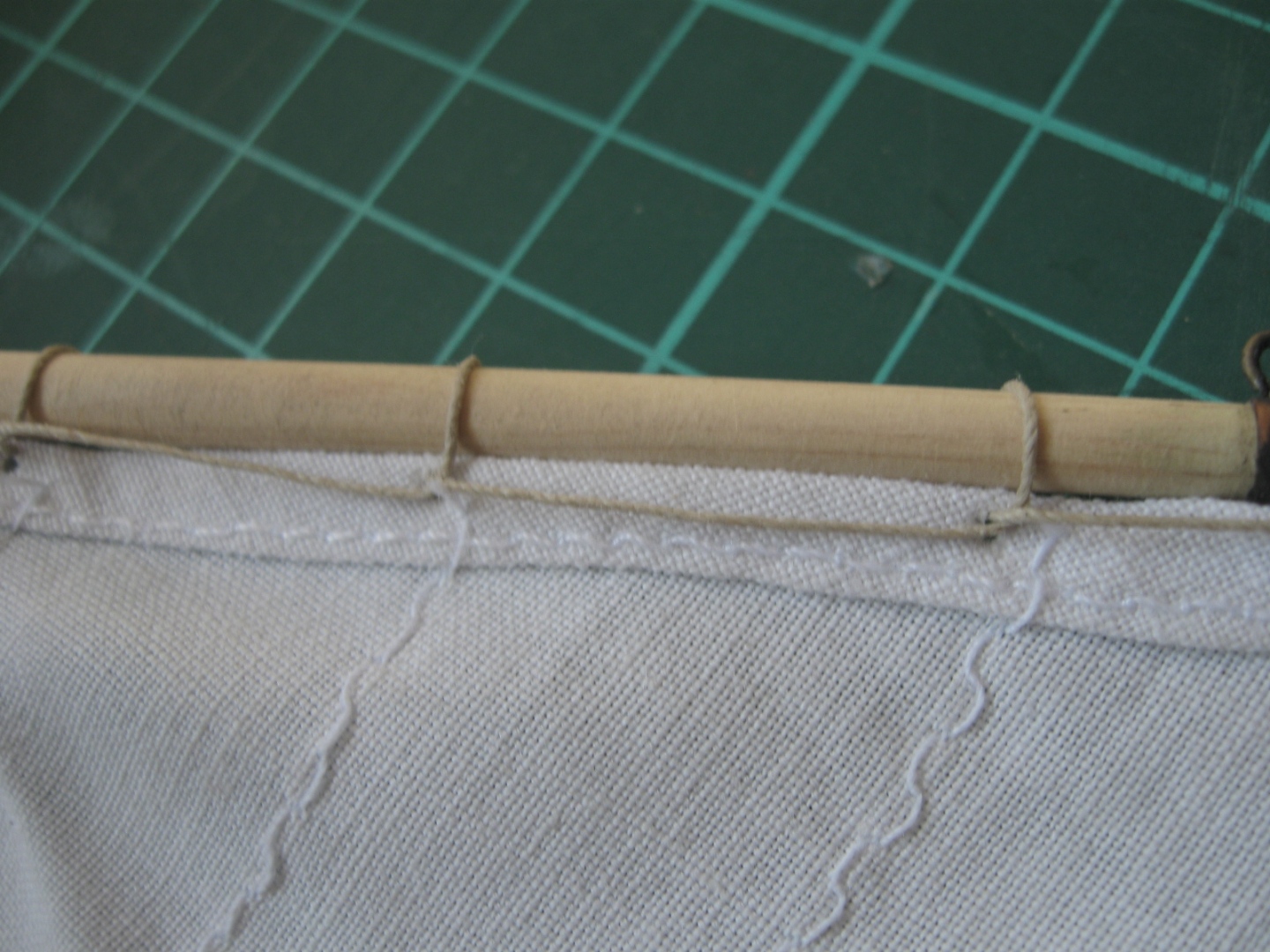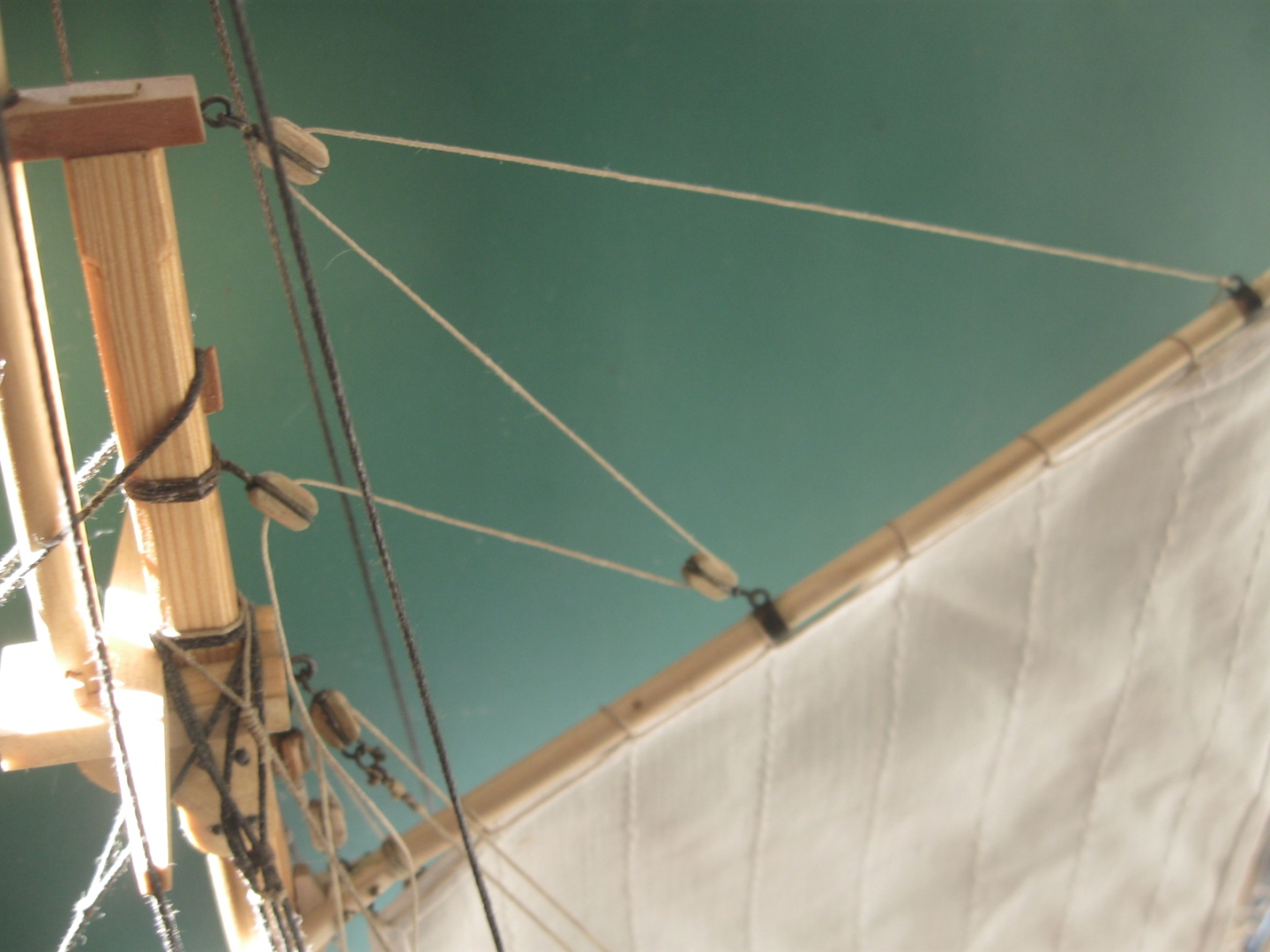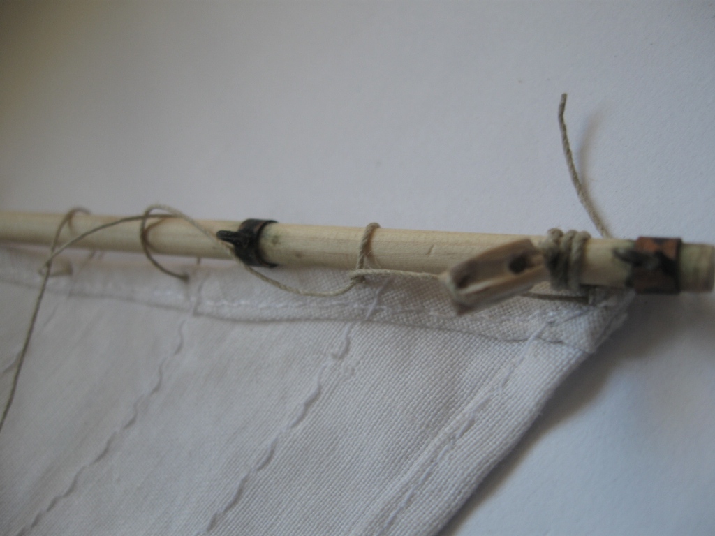 wracam do mojego modelu, poprosiłem siostrę o uszycie żagli, rozpocząłem zmagania z ożaglowaniem: