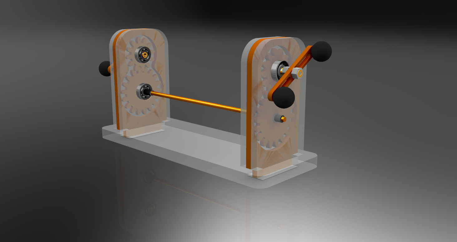 Gwoli ścisłości kręcąc korbka powodujemy obracanie się dolnej zębatki a ta jest połączona na sztywno z wałkiem i przenosi obrót na drugą stronę, następnie dolna zębatka na drugiej stronie przenosi obrót na górną a tym samym pozwala obracać się linie w sposób jednakowy. Być może na rysunku tego nie widać i może być błędnie odczytany ale takie było założenie od samego początku i nie inne. różnica między lewą a prawa zębatka będzie marginalna na poziomie kilku stopni, bo przewiduję dość dokładne dopasowanie kół zębatych.