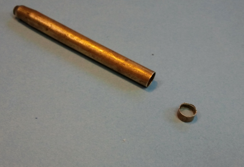 Przyrząd jest prowizorką wykonaną na szybko do testu. Teraz już wiem że przy robieniu większej ilości, blaszkę z otworem trzeba wykonać ze stali, bo w aluminium po kilku sztukach robią się wgnioty. Tak samo można zmodyfikować dobijak, ale to już zostawiam każdemu do rozważenia, kto zdecyduje się wykorzystać ten sposób. Pierwsze próby robiłem z rurki mosiężnej o grubości ścianek 0,3 mm, ale nic nie stoi na przeszkodzie żeby była to rurka miedziana.