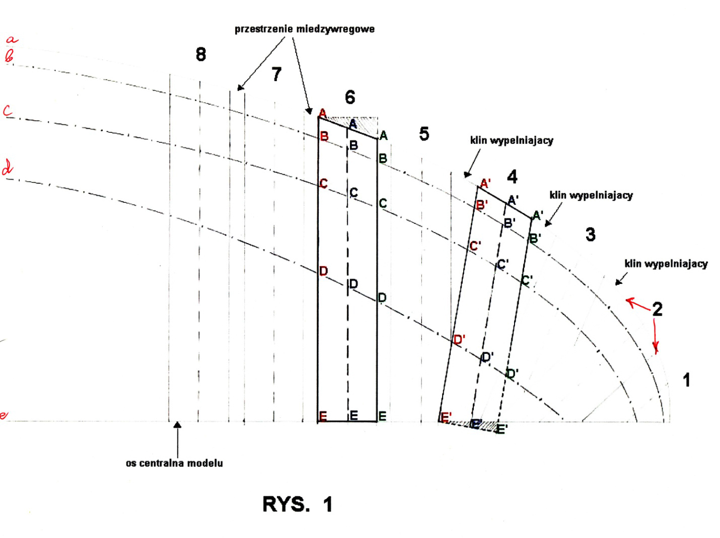 Należy jednakże pamiętać, ze z powodu w/w przestrzeni międzywręgowych, krzywizny sąsiadujących ze sobą płaszczyzny przedniej danej wręgi i płaszczyzny tylnej wręgi sąsiadującej z nią od przodu, oczywiście nie beda identyczne!