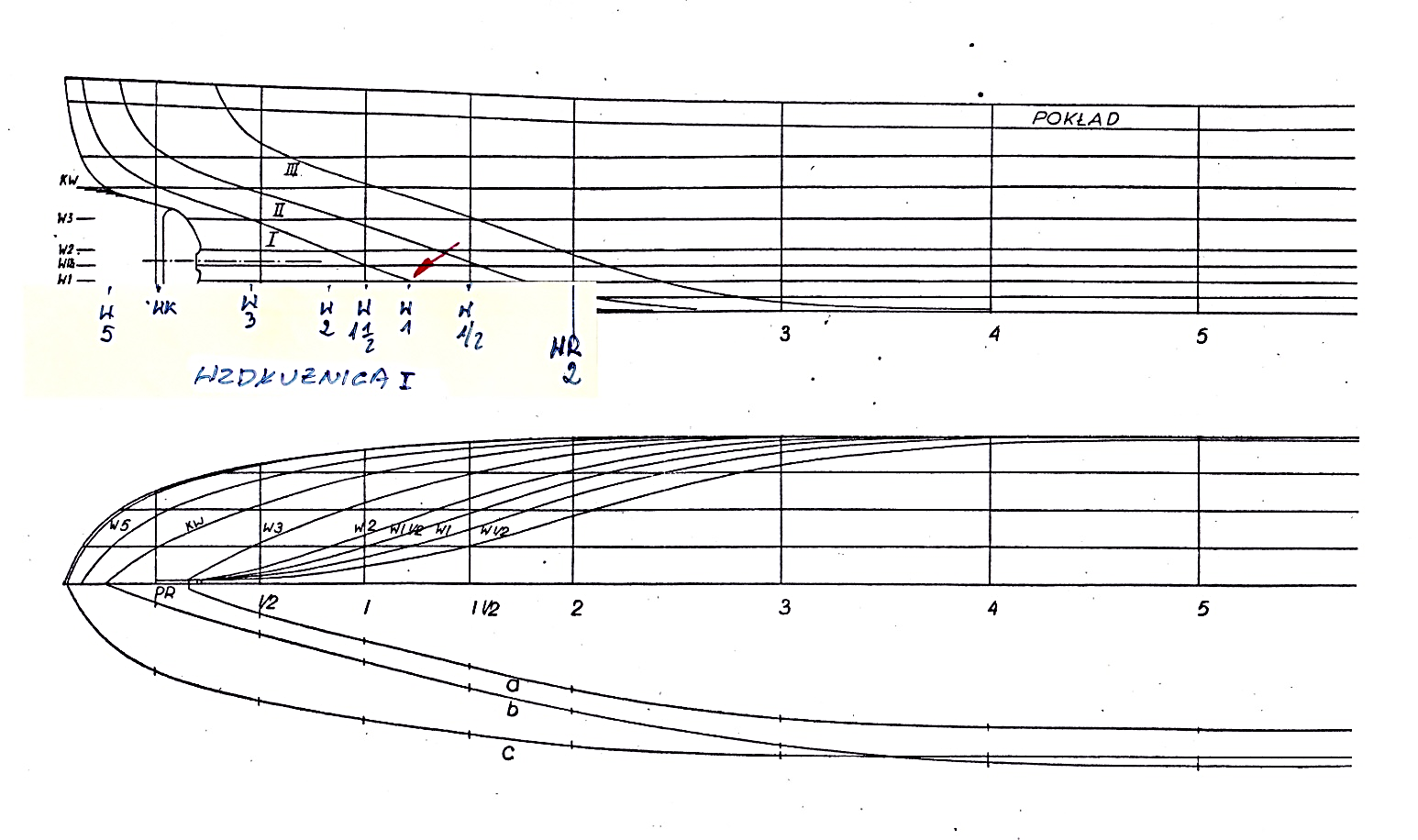 WK – wodnica konstrukcyjna lub inna nazwa KLW – konstrukcyjna linia wodna