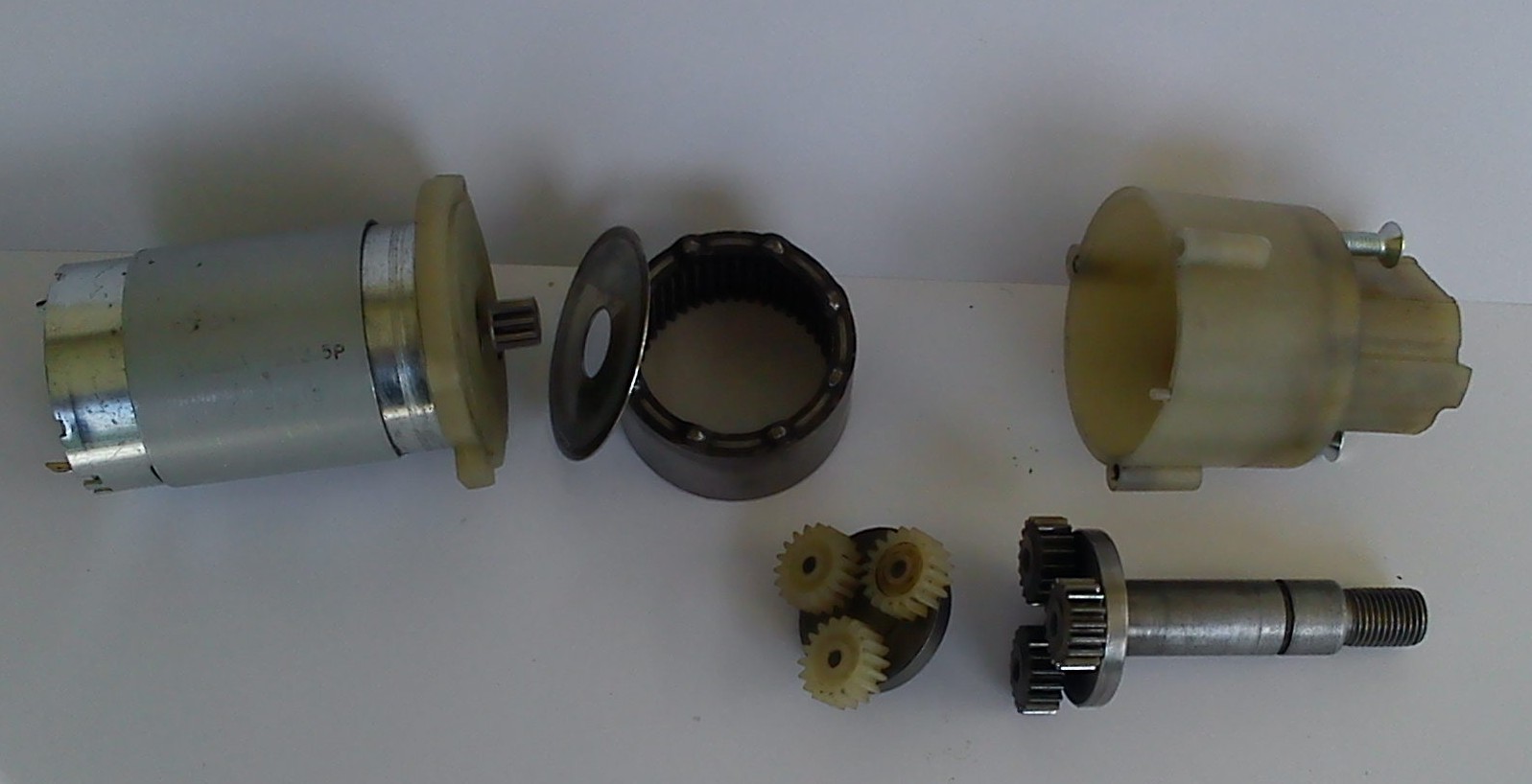 Przedstawiona przekładnia jest planetarną przekładnią dwustopniową o przełożeniu 1 : 36 , to znaczy dwa razy 1 : 6 . Brdziej doświadczeni koledzy mogą po przerobieniu obudowy uzyskać przełożenie 1 : 6 lub zblokować z kilku satelitów dowolną przekładnie .