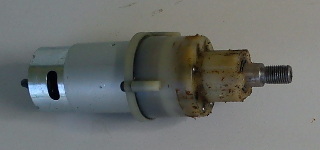 Jest to potrzebny nam gotowy motoreduktor . Rozbiurke zaczynamy od zdjęcia z wałka zabezpieczającego pierściena segera , za pomocą specjalnych szczypiec lub dwuch śrubokrętów . pod spodem są kulki łorzyska oporowego , będą potrzebne . Trzeba całość rozebrać ( trzy lub cztery wkręki na obwodże ) . Całość dokładnie myjemy . w benzynie lub nafcie .