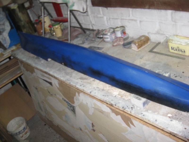 Dalsze moje poczynania nad kadłubem. Szlif szpachla, szlif szpachla, no i farba. O dziwo po pierwszym malowaniu nie było tego dużo. Drobne poprawki papierem wodnym no i do dzieła. Woskowanie, trzy kolejne po sobie warstwy, na drugi dzień warstwa poliwinylu natryskowo.