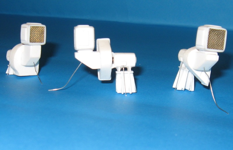 Troszkę coś z doskoku podłubię. Przy wyrzutniach przybyło niewiele drobnicy, ale dlatego że resztę postanowiłem kleić po zagruntowaniu. W między czasie robię kolejne detale, żeby przygotować ich jak najwięcej do malowania podkładem. Postanowiłem zmierzyć się z armatami. Narazie wyglądają troszkę topornie ale wymagają dopieszczenia. Zresztą oceńcie sami.