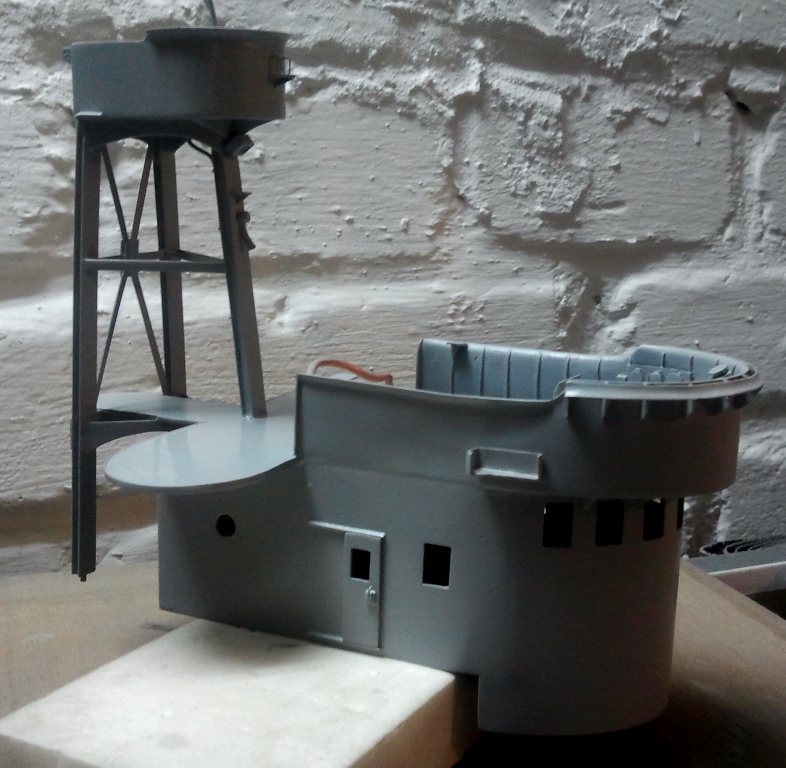 Witam, jako że miniony tydzień musiałem poświęcić pracy zawodowej, to nie przybyło wiele przy modelu. Efekty sobotniego popołudnia i wieczora. Przy nadbudówce maszynowni doszły zaczepy odciągów i siatkowe wyloty wentylacyjne, a na nadbudówce kotłowni zamontowałem drzwi (jeszcze bez klamek) i świetliki z bulajami. Niestety kolejne dni ponownie wyjazdy służbowe, więc nie wiem kiedy kolejny wpis w relacji.
