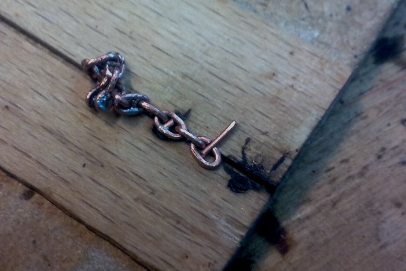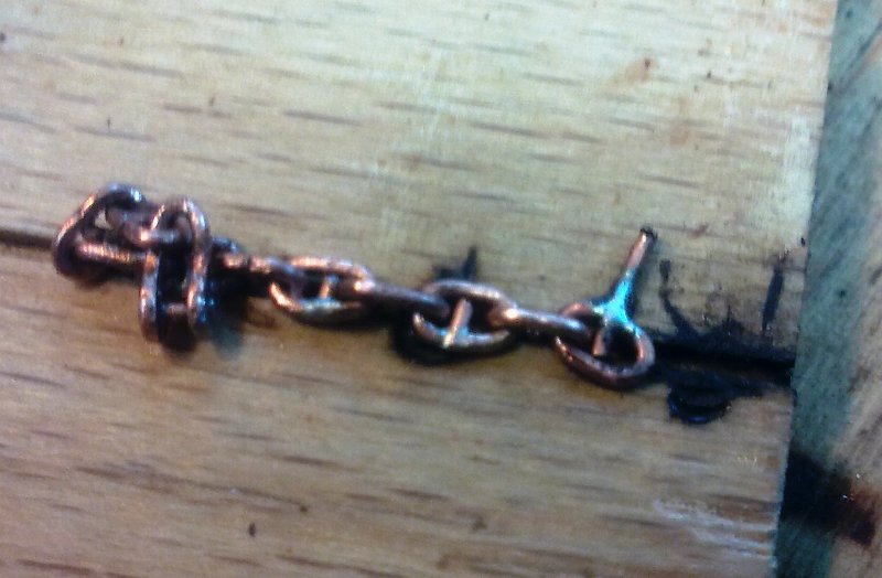 Pochwalę się kolejnym przyrządem zmajstrowanym na szybko. Zastanawiałem się ostatnio nad łańcuchem kotwicznym do modelu. Te które są dostępne na rynku, w tej skali są bez poprzeczek w ogniwach, więc trzeba było pogłówkować. Narazie można powiedzieć że jest to półfabrykat, ale po lutowaniu i obróbce powinno być lepiej. Też zastanawiam się co będzie lepsze, malowanie czy czernienie. Popróbujemy zobaczymy.