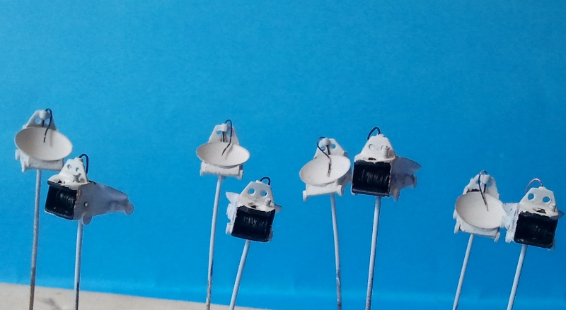 Postępy niezbyt zadowalające ale cóż ważne że do przodu. Dalsze prace przy pomoście dowodzenia i przygotowania do pierwszego malowania podkładem samej nadbudówki i jej wyposażenia. Zrobiłem też pierwsze sztuki imitacji kloszy lamp oświetleniowych.Wykonane z rurki miedzianej w której otwór wewnętrzny jest tylko 0,5 mm. Po zaokrągleniu końcówki, wlutowaniu drutu i przycięciu na długości, środki wyfrezowałem kulistym frezem dentystycznym.
