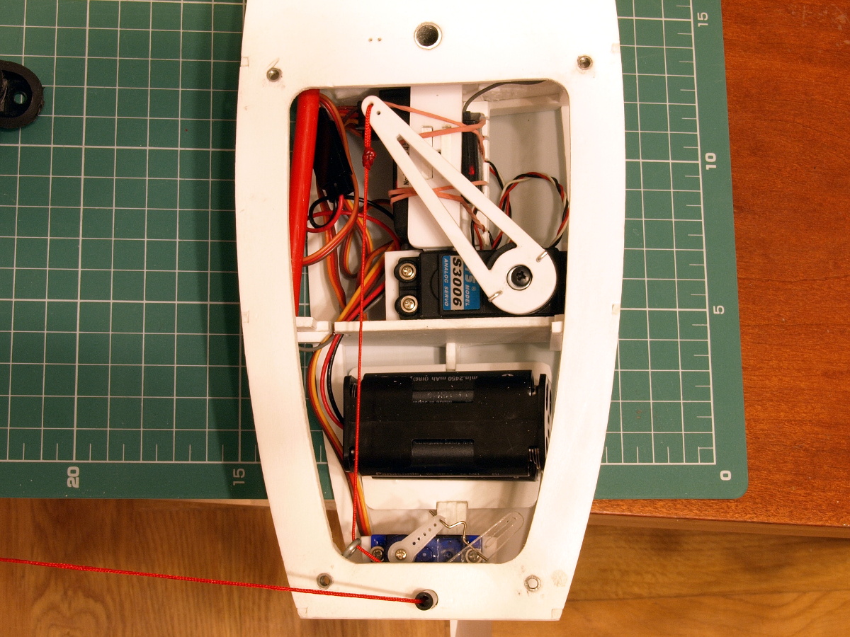 Wprowadziłem trochę porządku w kablach i zrobiłem orczyk do serwa odpowiedzialnego za wybieranie żagli.