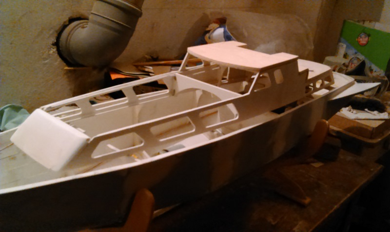 Jest to mój pierwszy model, który od samego początku do końca pragnę zrobić sememu. Wykonany jest z PVC (prawdopodobnie spienione), do tego używałem szpachlówki samochodowej, najpierw firmy Novol, potem Troton (ze względu na dostępność w sklepie). Do „pomalowania” używałem spreji akrylowych, niestety różnych firm, czego nie powinno się robić, ale w porę udało mi się naprawić ten błąd. Ponadto od wewnątrz, łączenia wręg z poszyciem zalałem żywicą poliestrową w celu uszczelnienia. Do łączenia płyt PVC ze sobą oraz ze sklejką używałem kleju cyjanoakrylowego średniego.