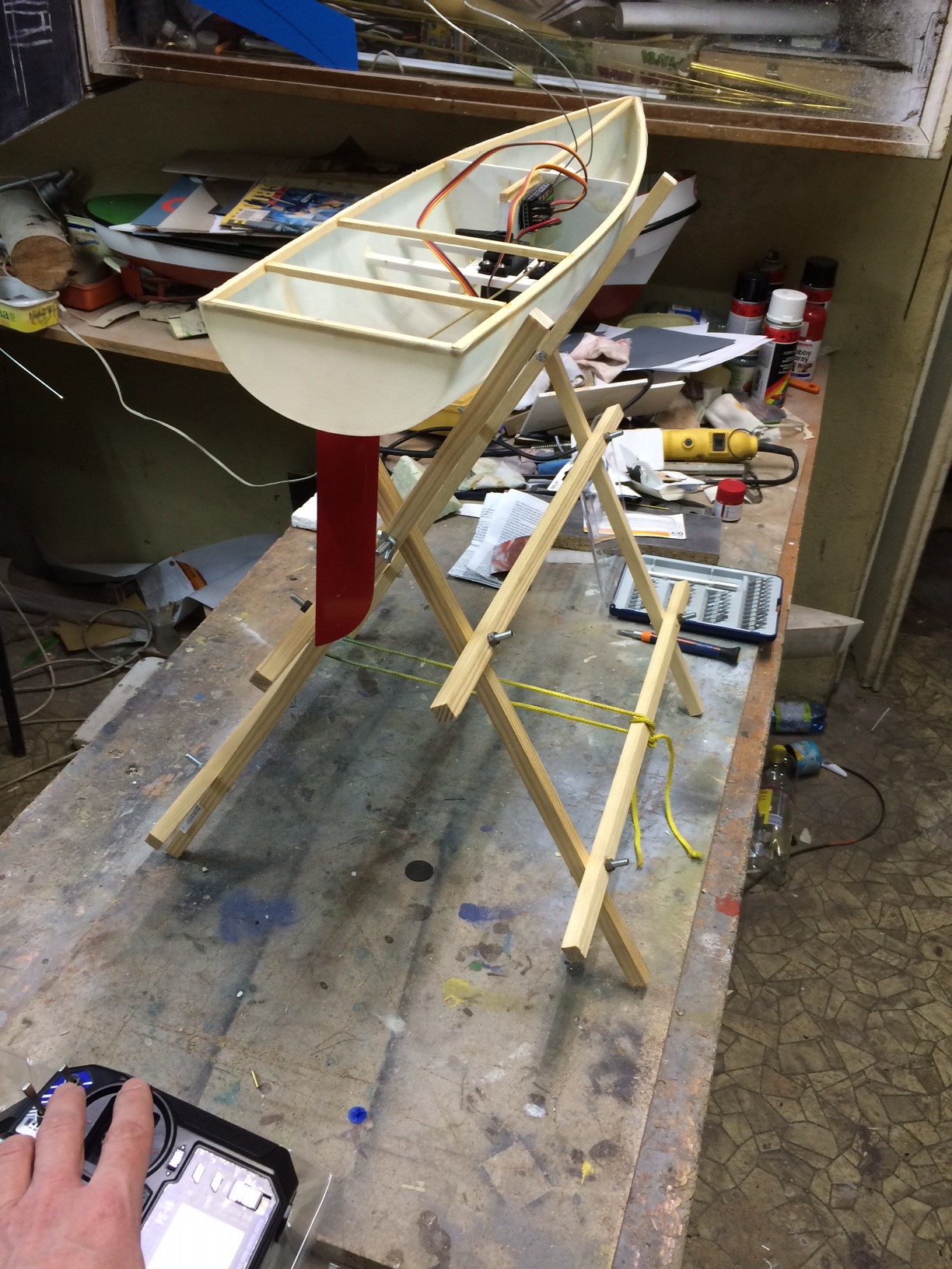 Kolejny czwartek spędzony w modelarni. Tym razem powstała podstawka pod model. Połączone zostało serwo ze sterem, a następnie wzmocniono żywicą i tkaniną szklaną kluczowe miejsca w modelu.