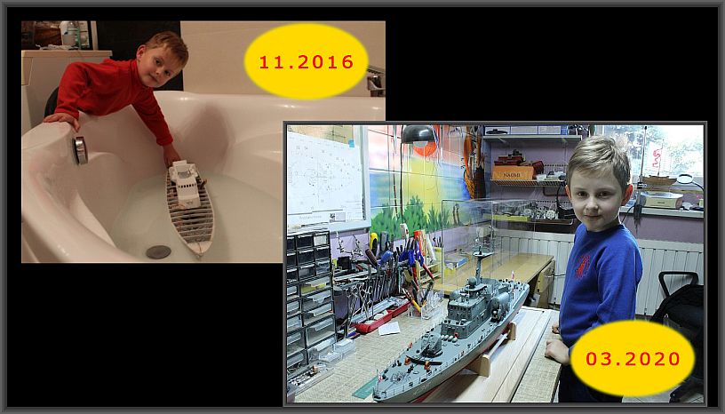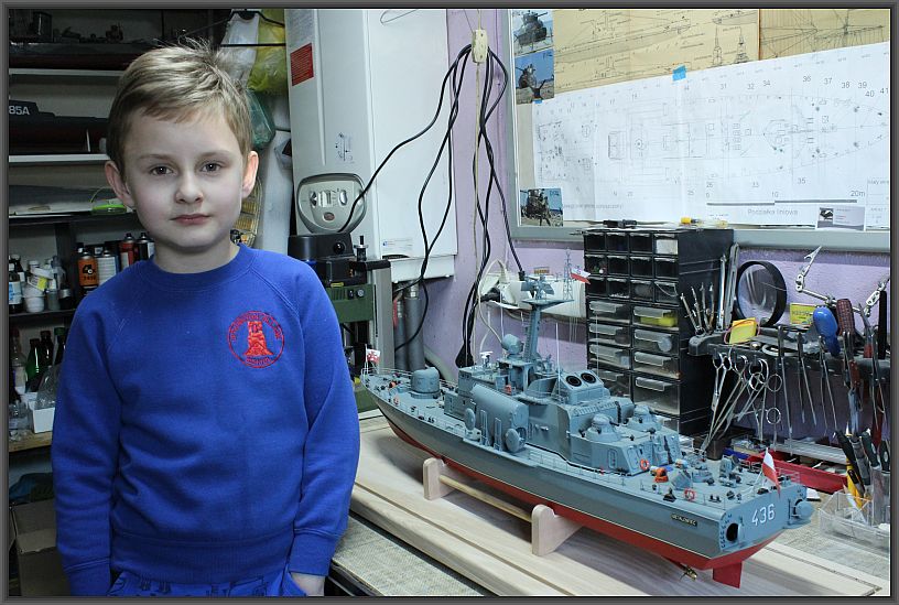 Rozpoczynając relacje z budowy na pierwszym zdjęciu ,był wnuk, bardzo zainteresowany okrętem,