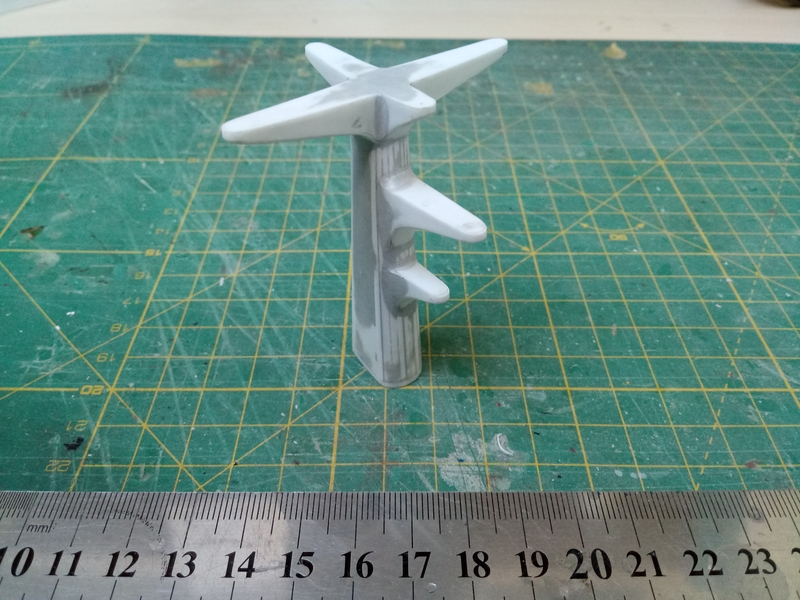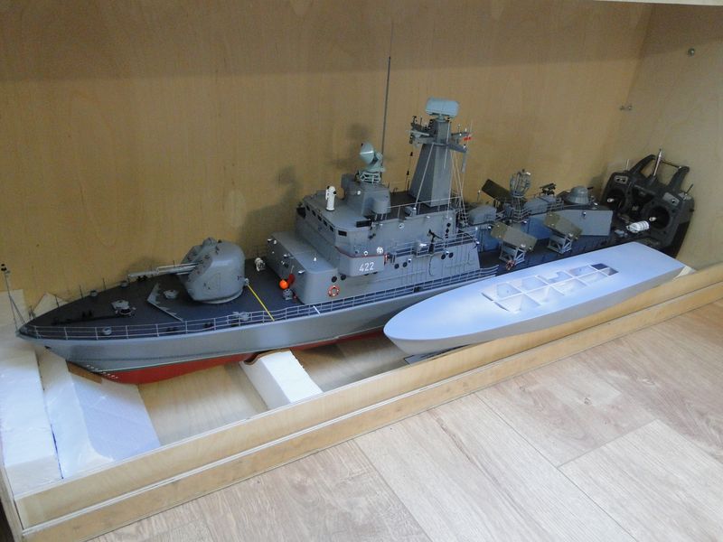 Model, jak poprzednie, powstaje w skali 1:50 i z tego powodu będzie stanowić dla mnie nie lada wyzwanie. Piorun wypierał 3 kg, Groźny 2 kg a kuter, wg obliczeń, tylko 700 g. Właśnie z powodu masy odpada metoda słomkowa stąd zamierzam zbudować swój pierwszy kadłub z laminatu. W tym celu zbuduję kopyto, na podstawie którego następnie wykonam formę i kadłub docelowy.