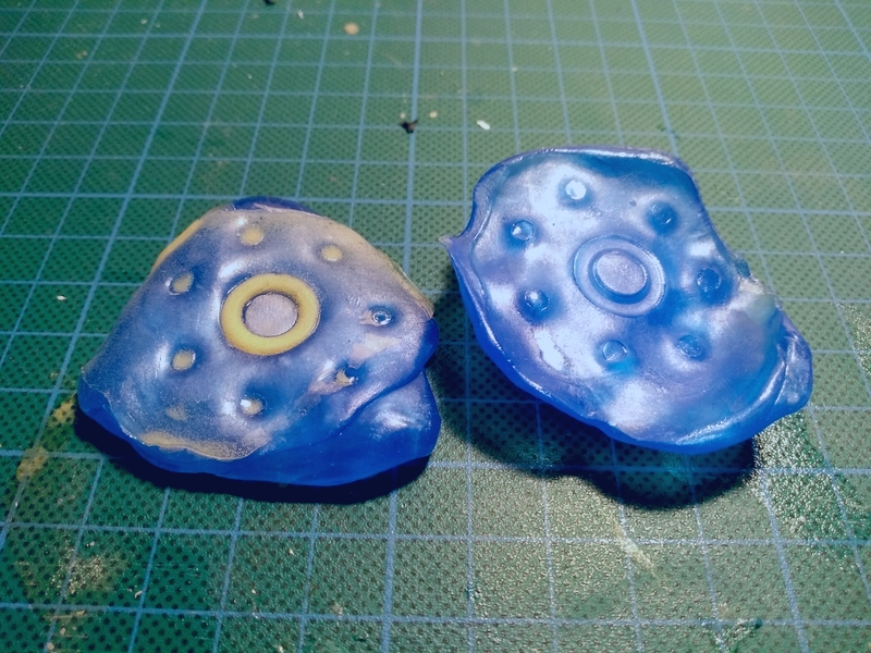 Jak tego używać nie będę się rozpisywał bo w sieci każdy może znaleźć ale co dla mnie było najlepsze to to, że jest to plastik termoplastyczny wielokrotnego użytku, który po trochę ponad 1 minucie w gorącej wodzie staje się mięciutki jak plastelina. Od tego czasu mamy tak na moje oko około 2 minut na odbicie obiektu (jego dolnej części) w formie. Po około 5 minutach plastik zastyga i można przystąpić do odbijania górnej części wzorca. Po około 15-20 minutach miałem dwuczęściową formę gotową do odlewania. Nie trzeba przy tym żadnych dodatkowych rozdzielaczy bo obie części od siebie spokojnie odchodzą i elegancko potem pasują.