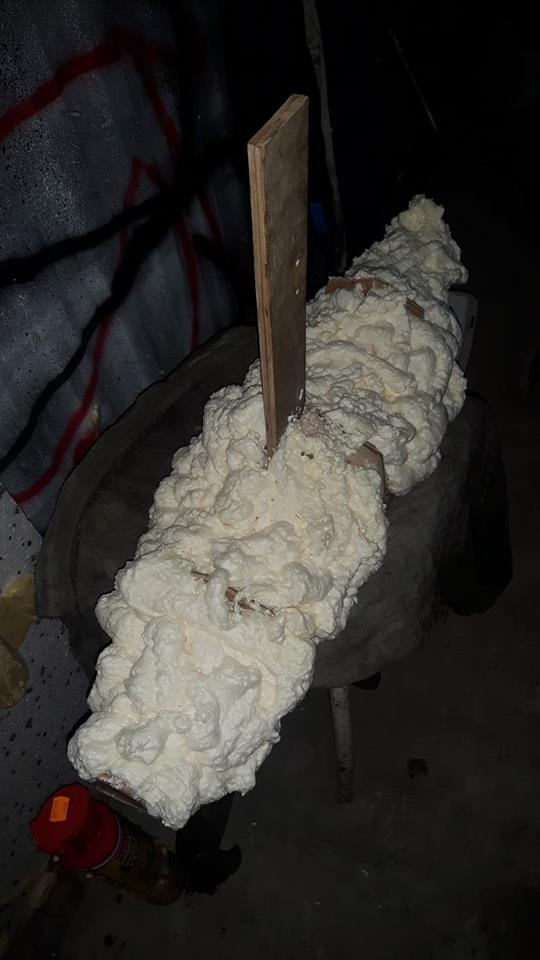 Wregi wycięte ze sklejki , górna część również. Długo zastanawialem się jak wykonac resztę. Zacząłem układać poszycie z listew balsy jednak postanowilem wszystko usunąć a wypełnić wszystko pianka. Klika tygodni dalej mam już wyszlifowana pianke . Dziś większe ubytki pianki postanowiłem wypełnić szpachlowka . Teraz najważniejsze pytanie .... co dalej . Myśle aby wszystko potraktować mata , zywica i na końcu wyszpachlowac .....