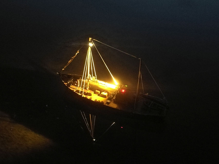 W środku jest tylko pieczątka na jednym z drewnianych elementów - 1970, ale nie chce mi się wierzyć, żeby to była data produkcji, bo kadłub jest z plastiku. Reszta to drewno/drewnopodobne.