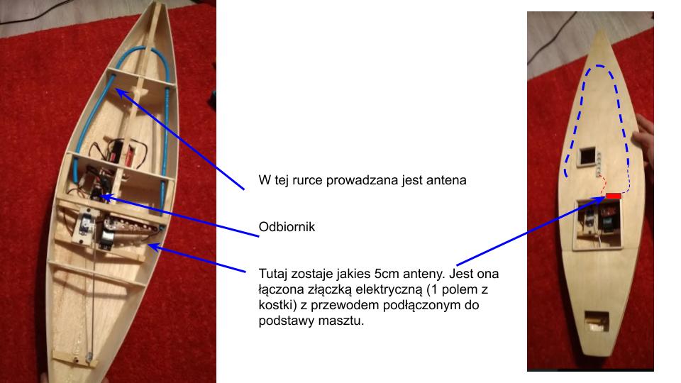 Jak nie było 2,4 GHz to w żaglówkach na rufie wklejona była rurka, na nią nasuwana rurka plastikowa w której był przewód antenowy.